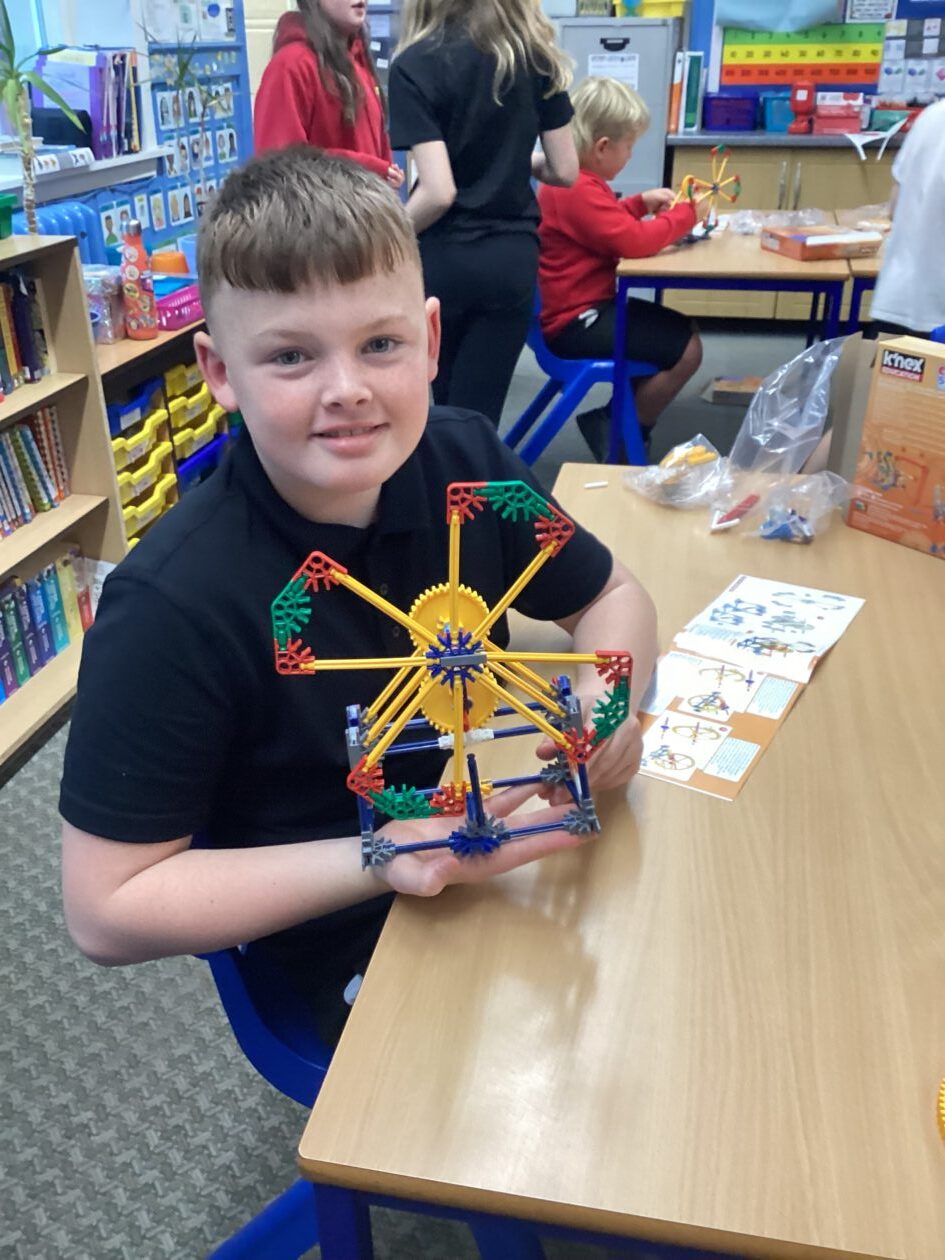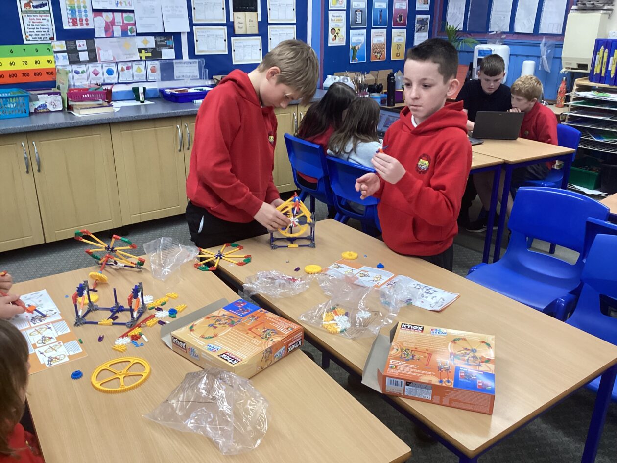 Recently in P.5-P.7 we had a go of our new K’Nex kits we just got as part of Maths Week. We had to try and make a windmill using gears and it was hard at first. We all came across 1 or 2 problems but we never gave up and everyone managed to finish there windmill and they all look really good. We saw how different gears can change the speeds or moving parts.