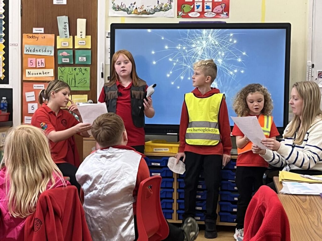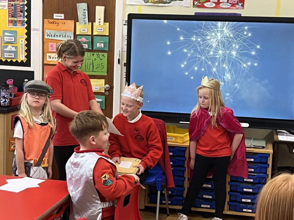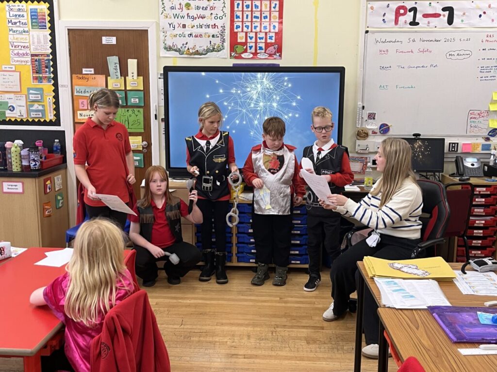 We made a play called Gunpowder Plot. The play was about how fireworks day started. It started because they wanted to celebrate that the King wasn’t killed. I was guard 1 in the play and Indie was Guy Fawkes. – Aurelia