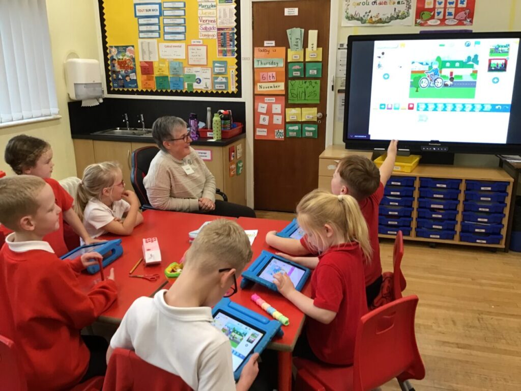 Miss Cochrane came in to do some ICT. We played Scratch Jr on the iPads, this is coding. You can add characters, and you move them around by using the arrow. You can even make them go on top of a roof and in the air. I used a cowboy character. We also practiced sending emails. – Ollie