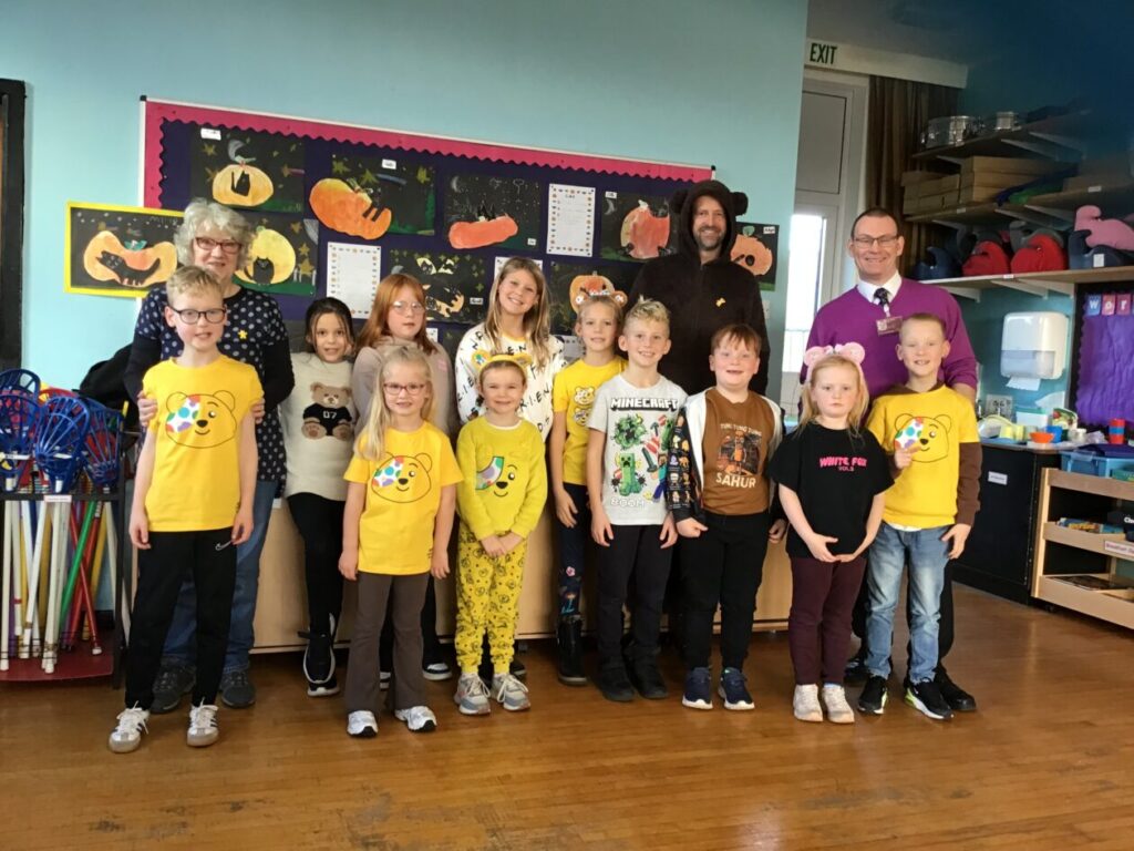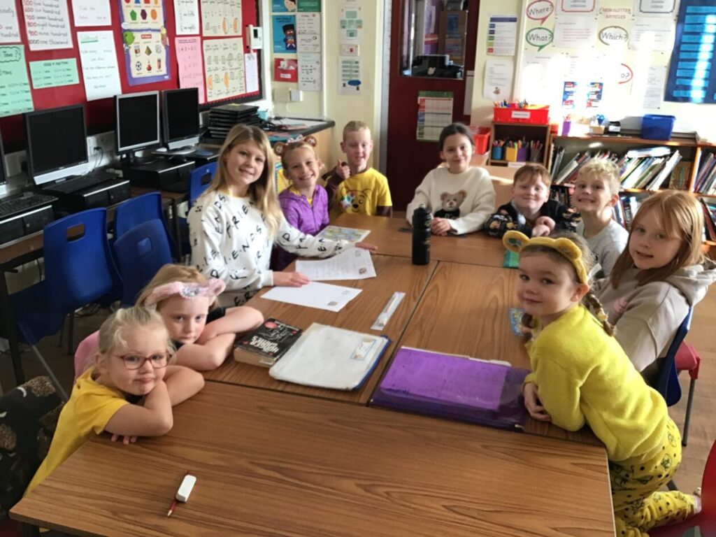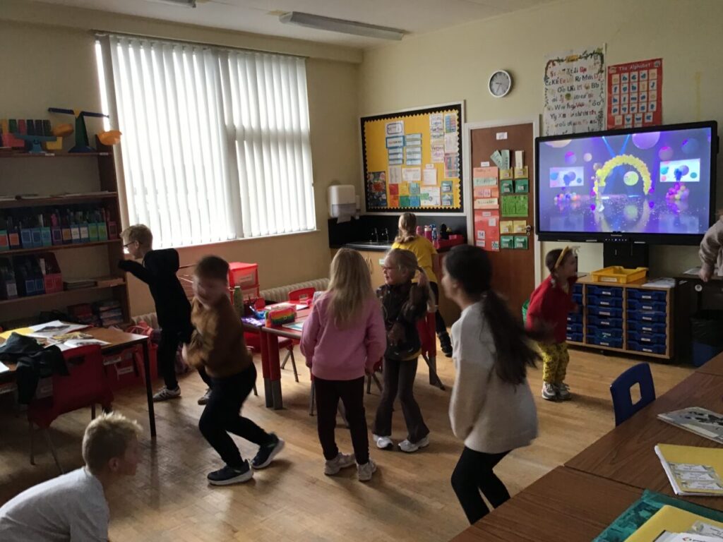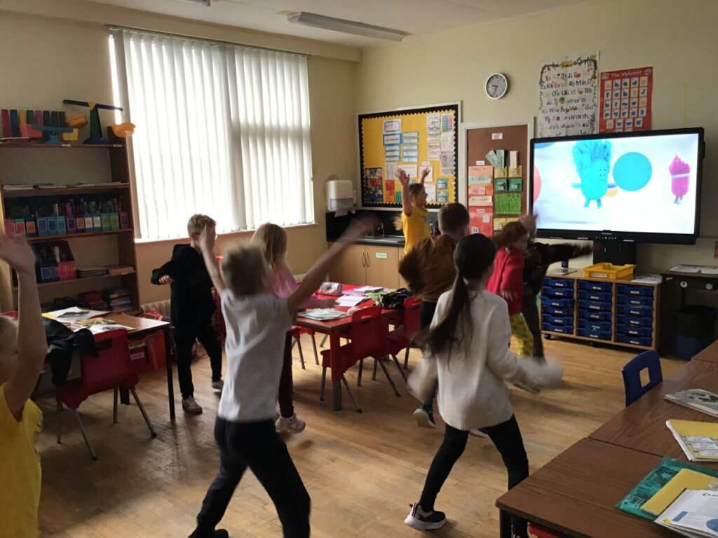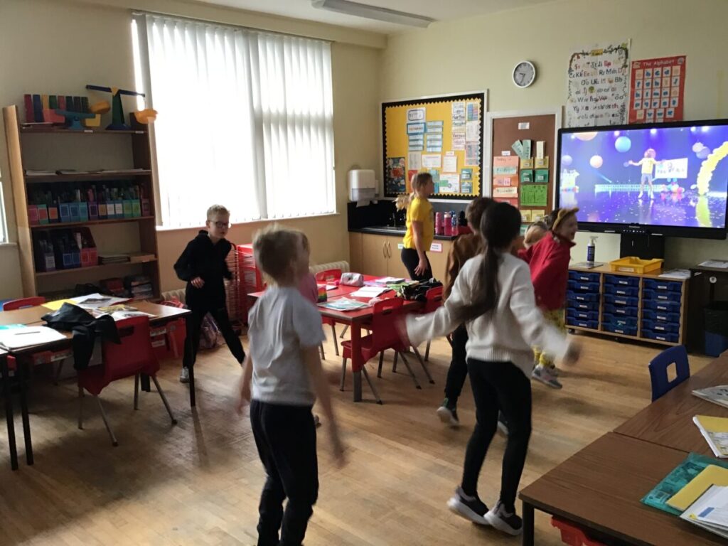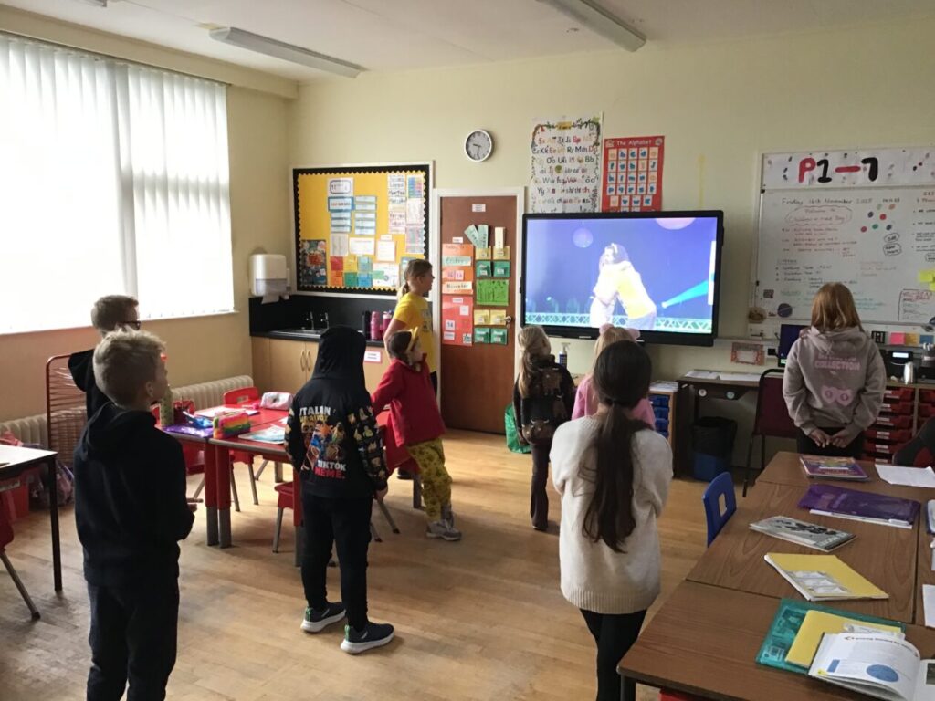 For Children in Need we could dress in non uniform. We started the day by dancing to Joe Wick’s new episode. After that we had a Kiddy Council meeting. Then we did some spotty art where we drew spots on Pudsey and Blush and we also played spotty statues. We raised £50 for Children in Need! – Amelia