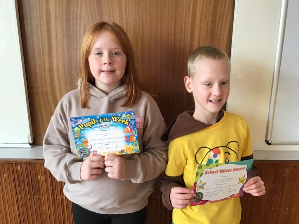 The school value was happy and Finley won it. Millie got Pupil of the Week!