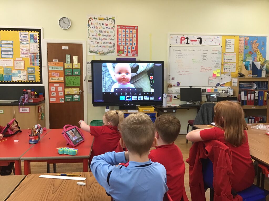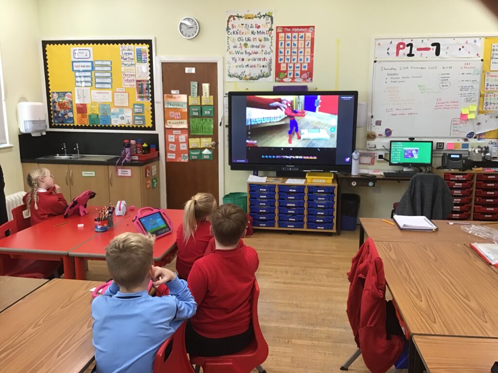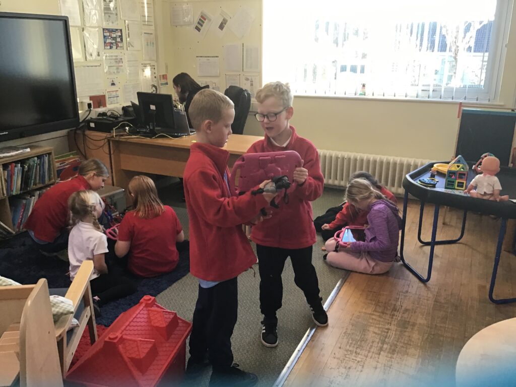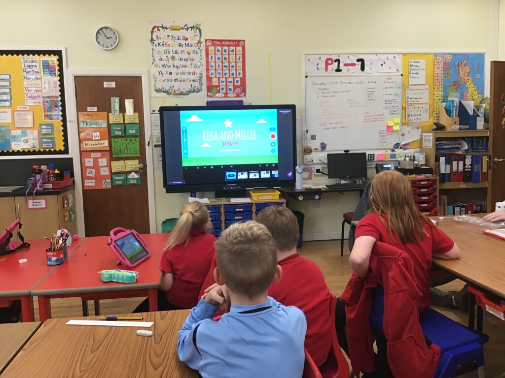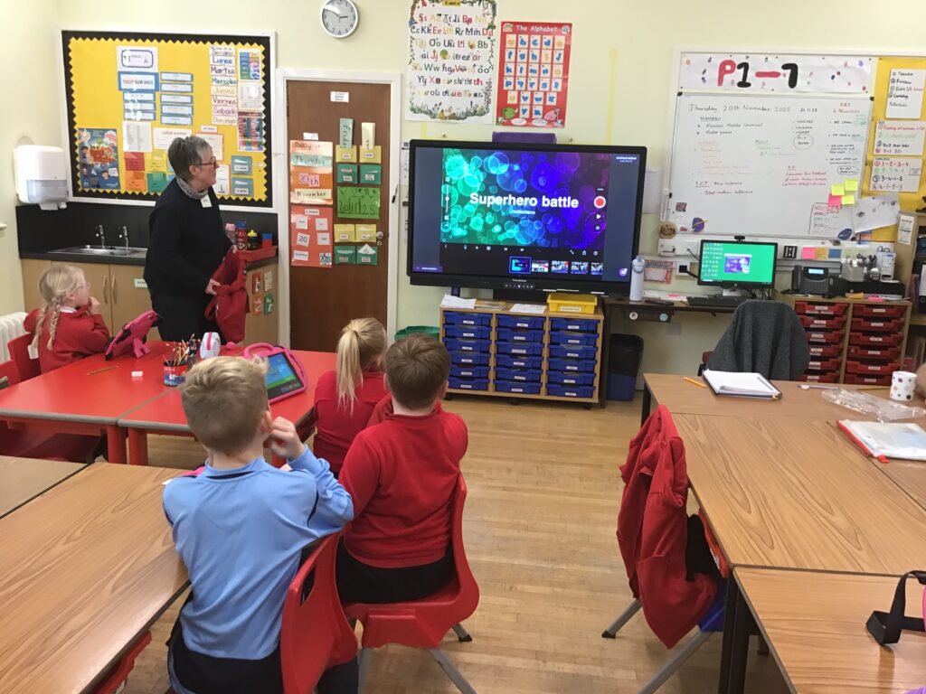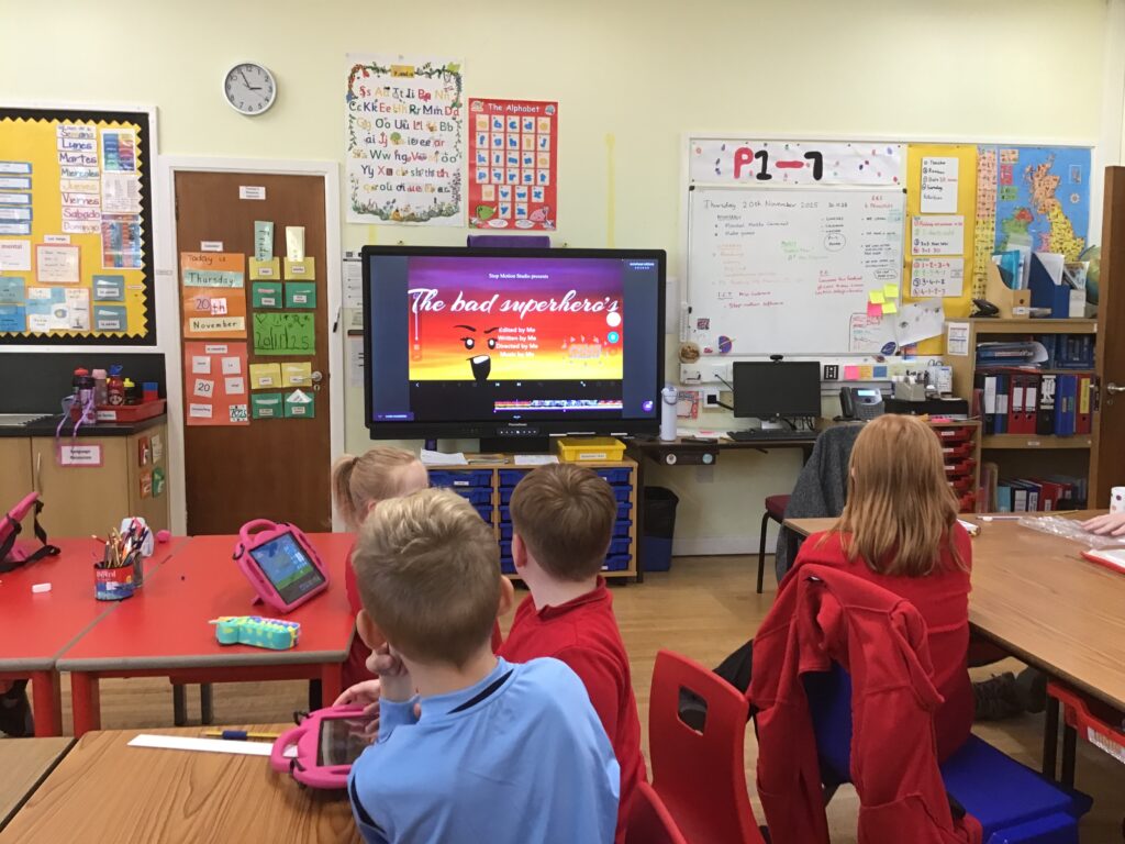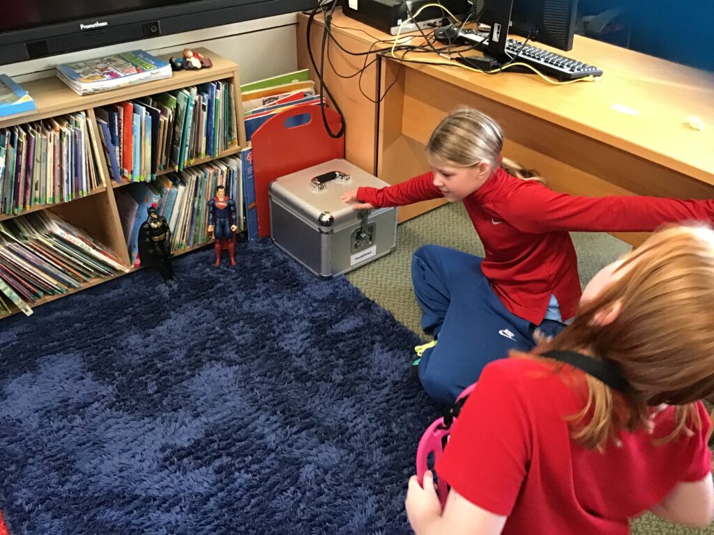 With Miss Cochrane last week we made some stop motion videos with the iPads. We made these in pairs, I was with Finley and we made a space video. We had characters at the space station. After we made the videos we showed them to everyone on the board using screen mirroring. – Arleigh