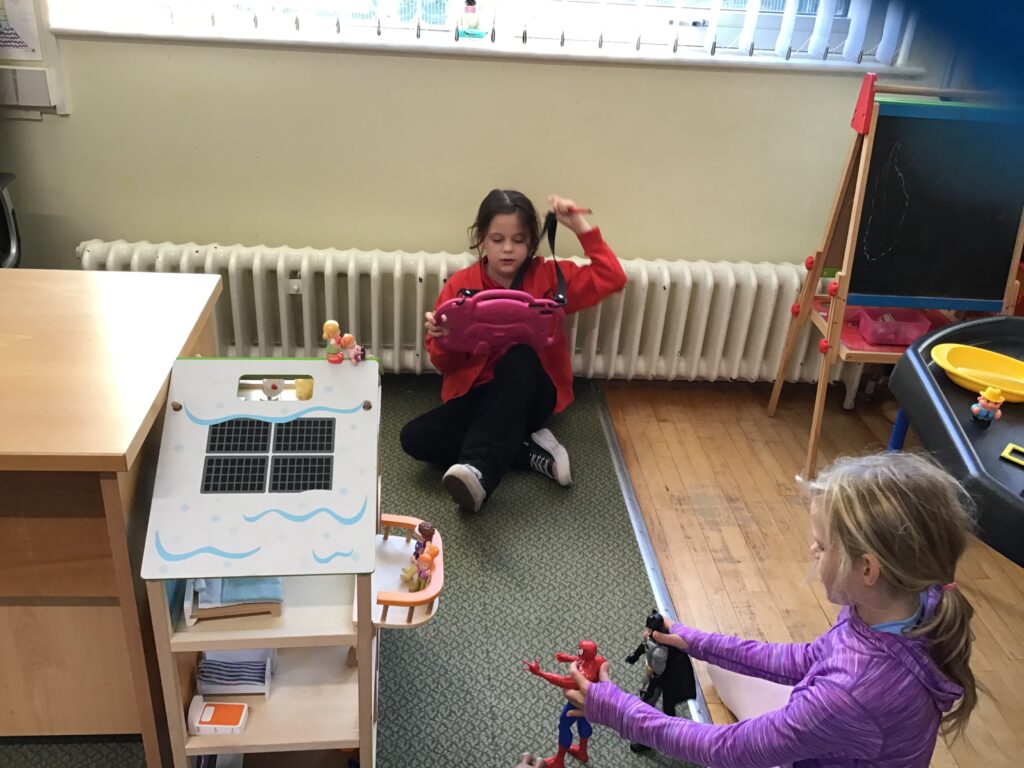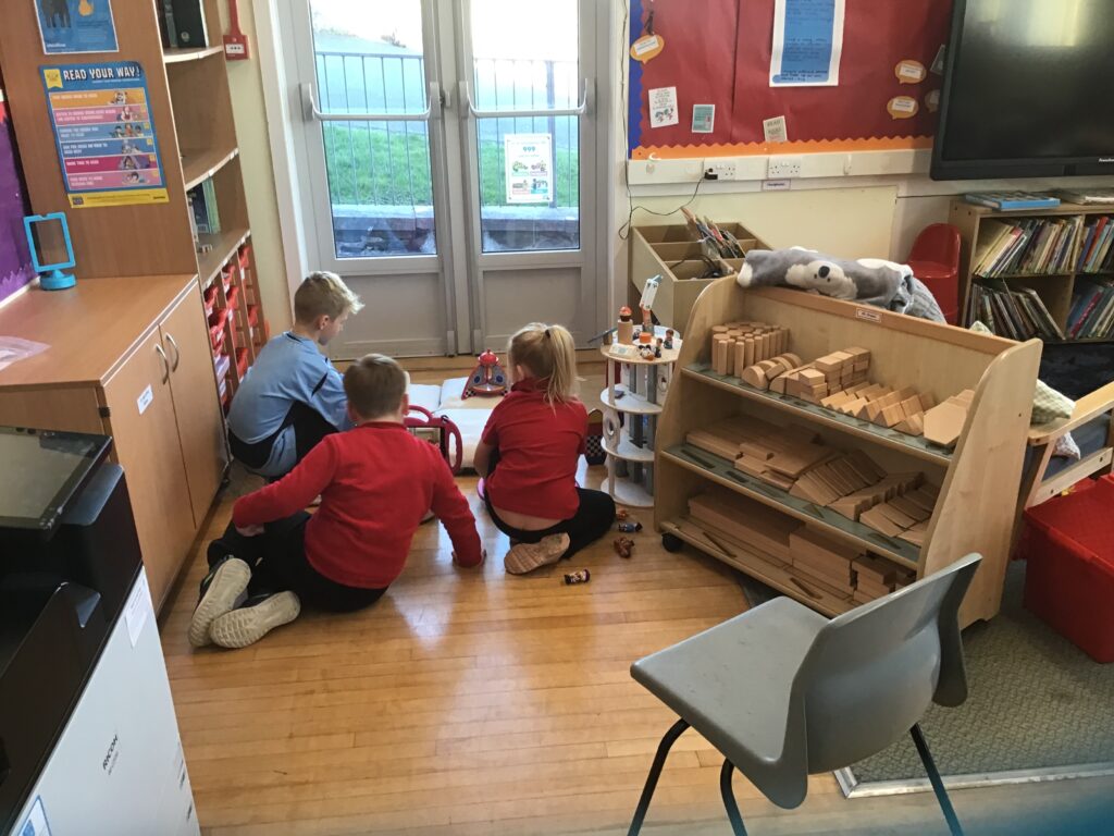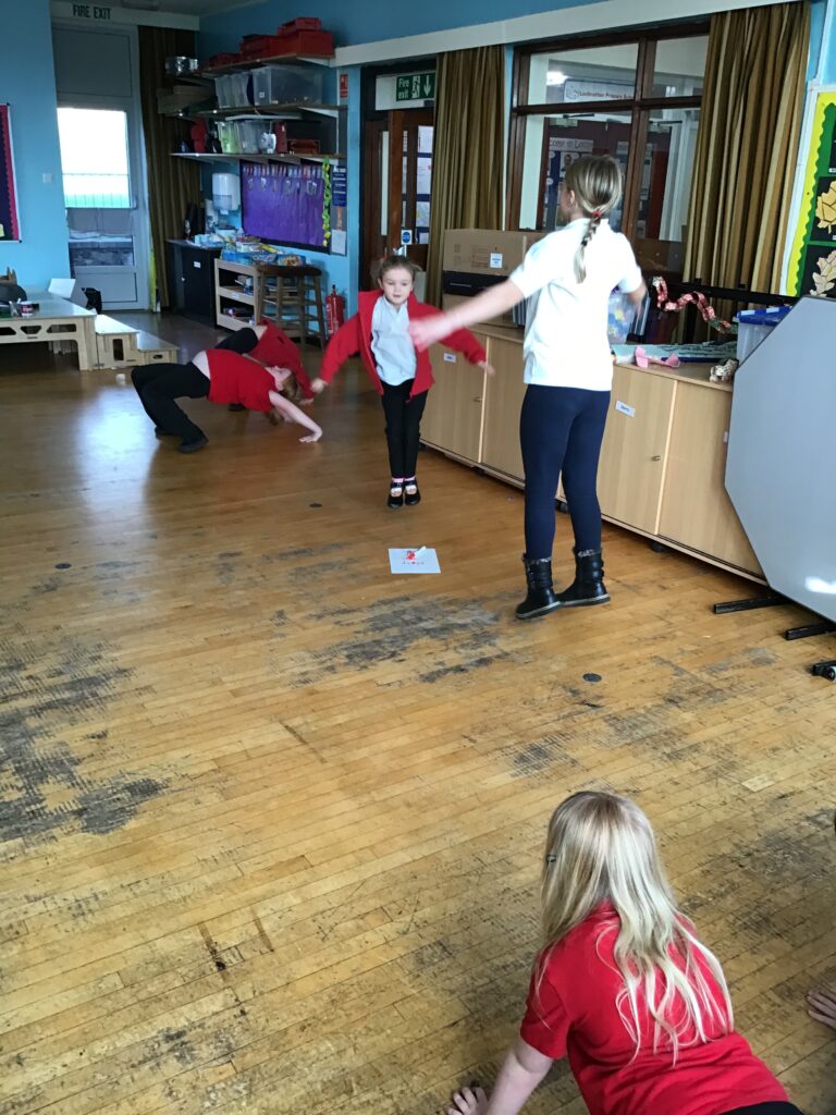 We were making dramas of different things. We all had to act out a mum tripping over toys and everyone had different ways of doing it. My group put crayons on the floor and then Ollie and I were the mum and dad and we helped them pick them up. – Indie