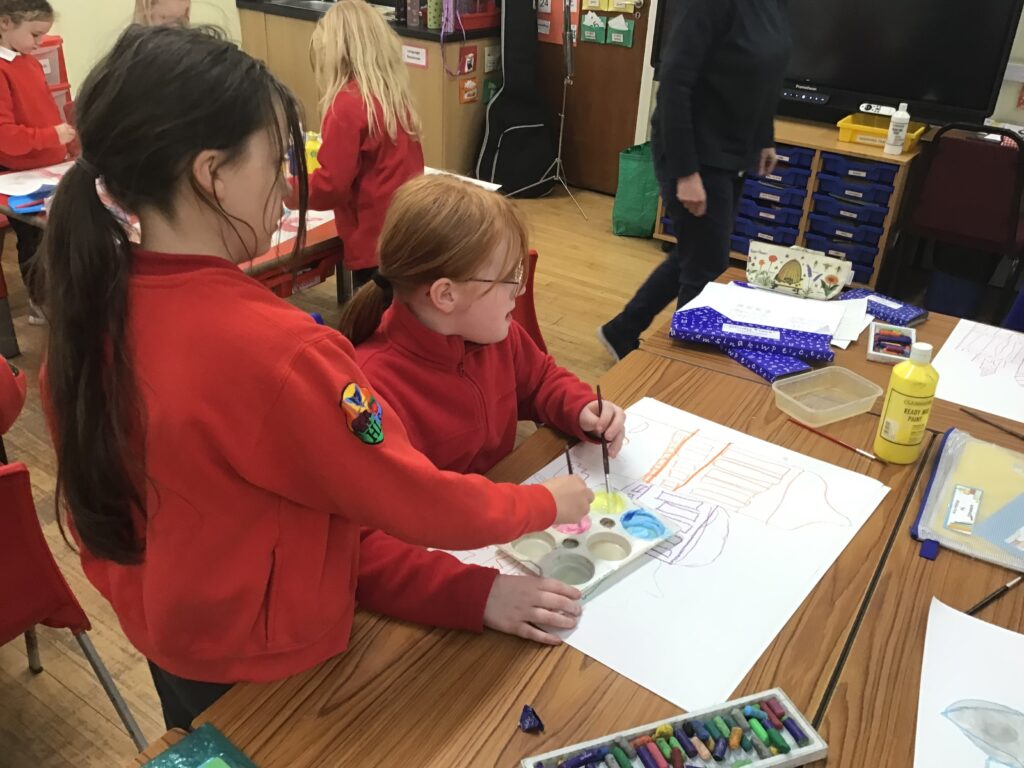 We were colouring in our art folders for our art to be kept in when they’re finished. – Indie