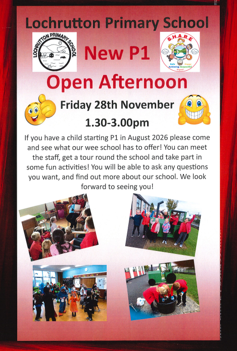 We have an Open Afternoon this Friday for any new P1’s starting next August. Come along and see our school!