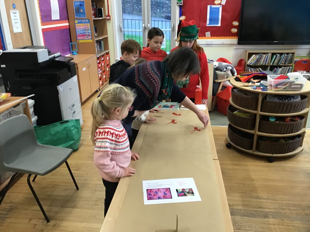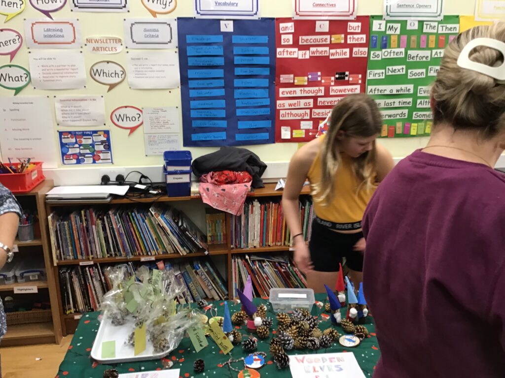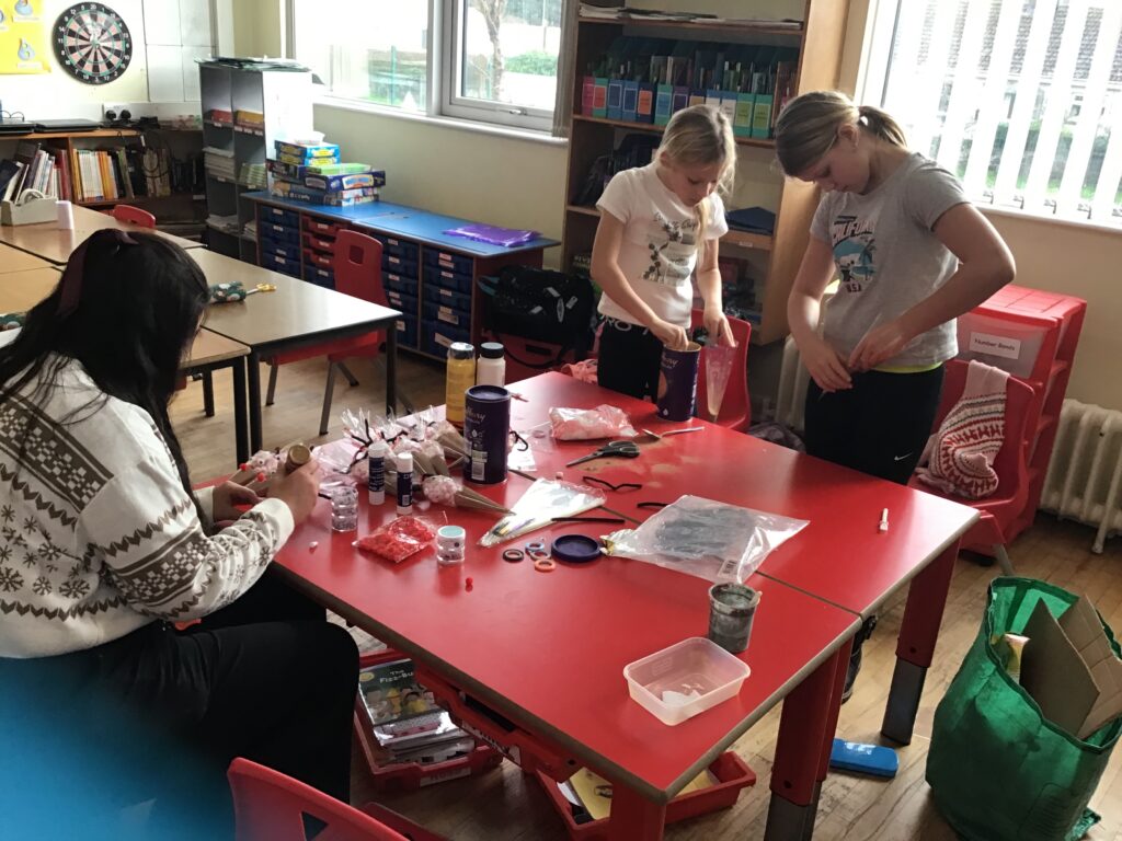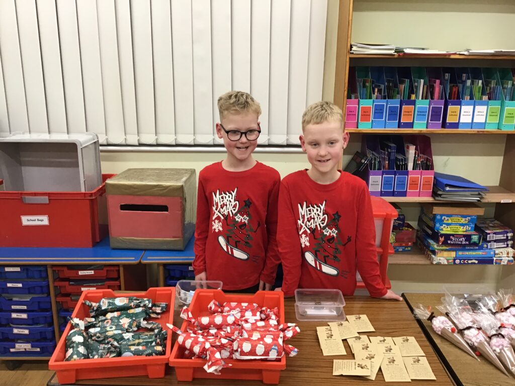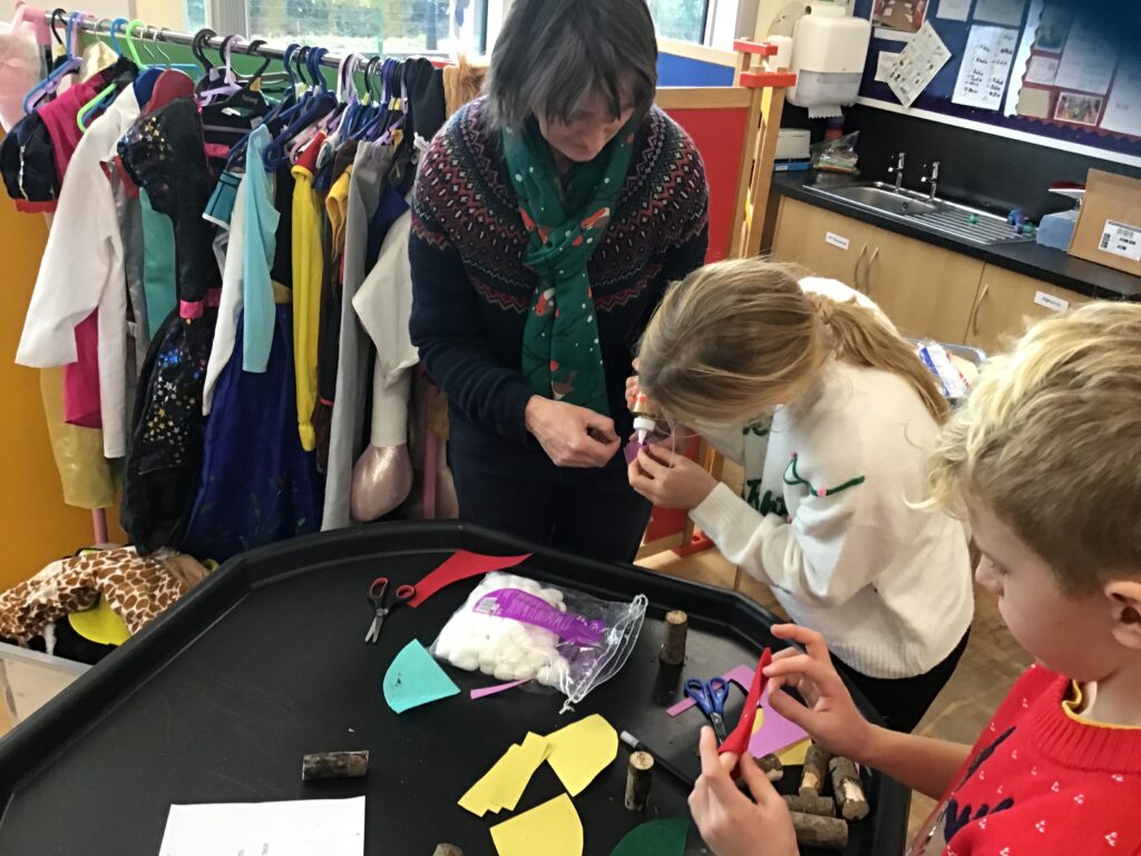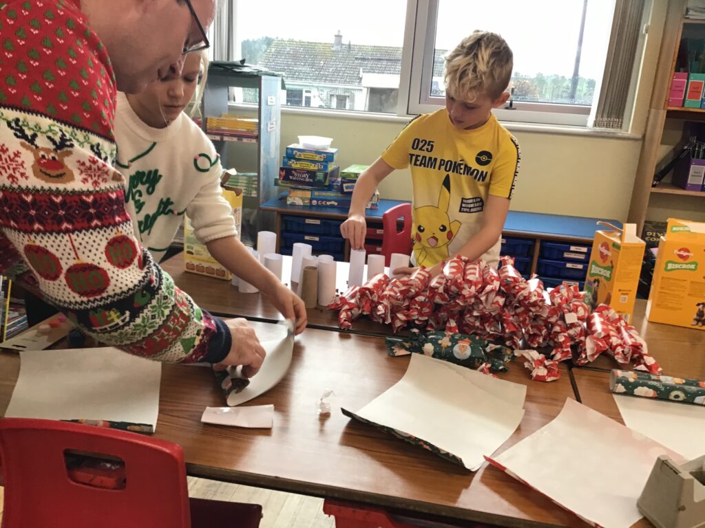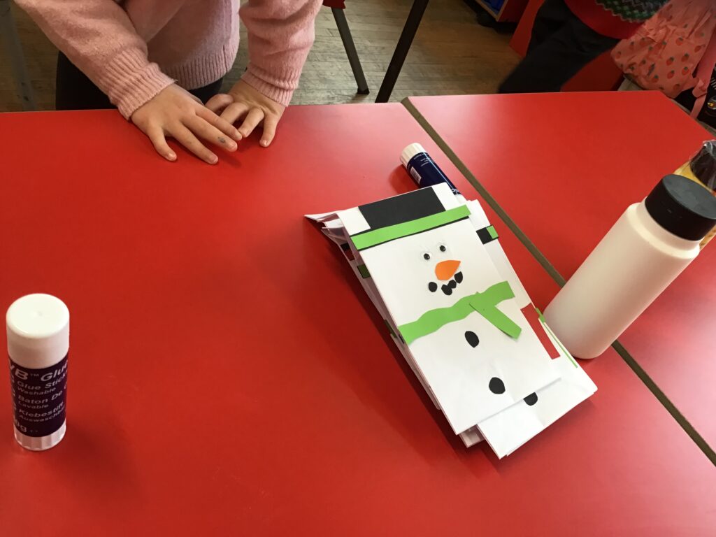 On Monday we had a crafts day for the Christmas play night. We dressed in Christmas jumpers and listened to Christmas music as we were the elves. We made reindeer hot chocolate, snowman bags, ‘do you want to build a snowman’ bags, Christmas wrapping paper, tree decorations and crackers for dogs and cats. We will be selling these on the night. – Indie
