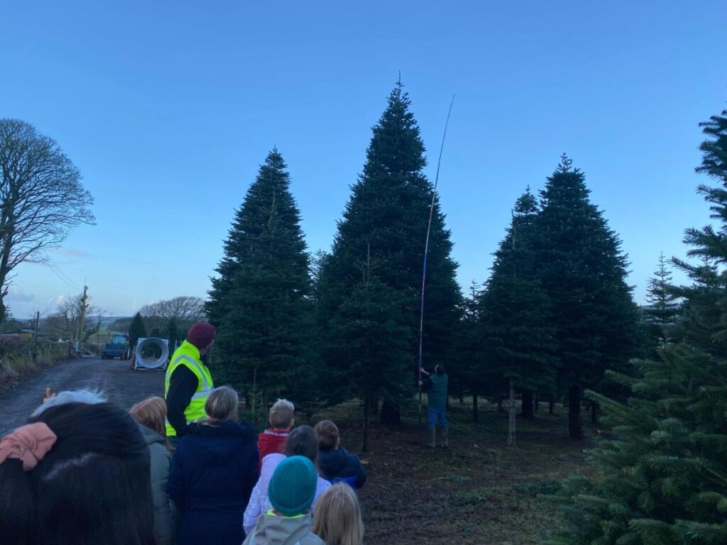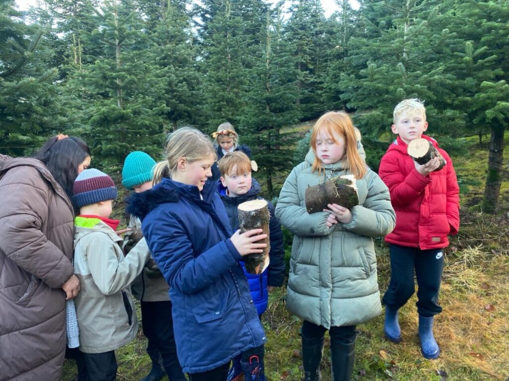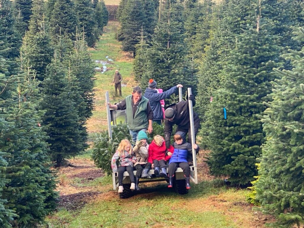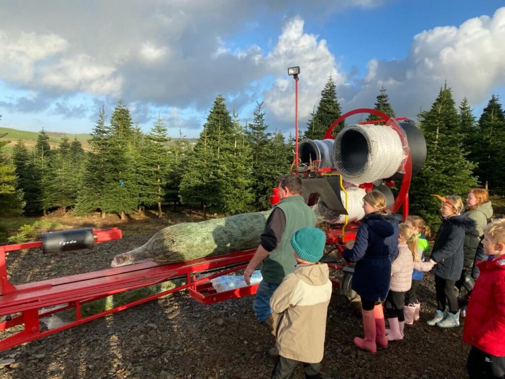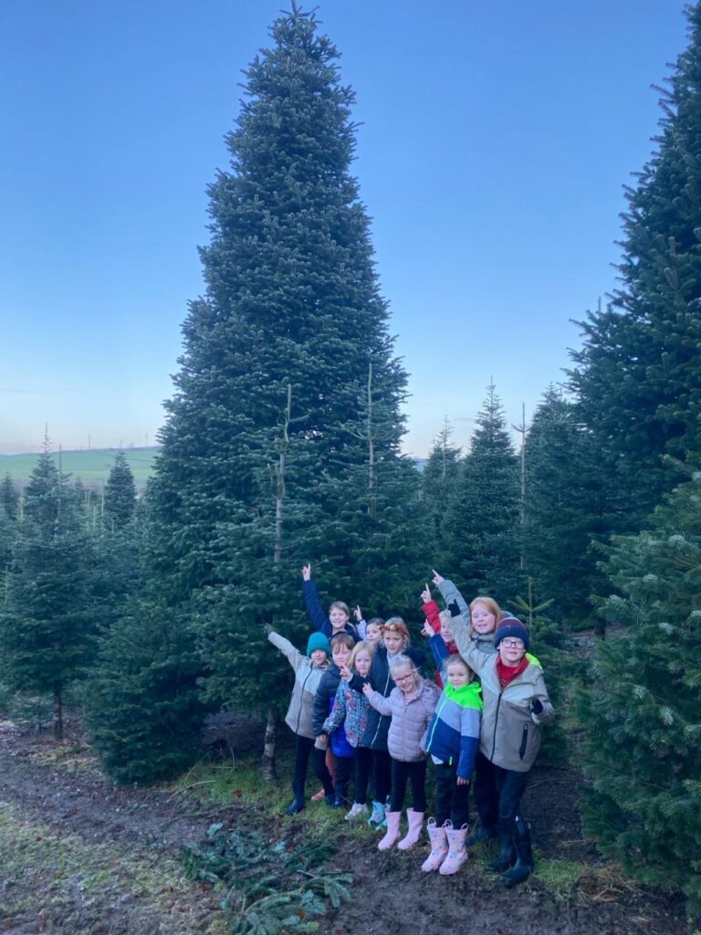 Today we went to a Christmas tree farm. We were picking up the 2 winning Christmas trees. First we got to walk around and find the sweets on the trees, then we picked the Christmas trees we wanted, then we pulled them up onto the trailer and we got to ride on them as well! Finally we watched them get wrapped up. I had a very fun day! – Indie
