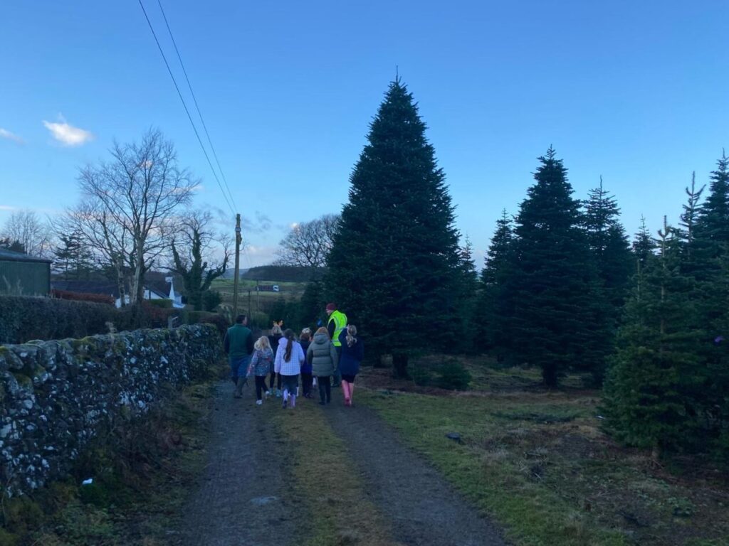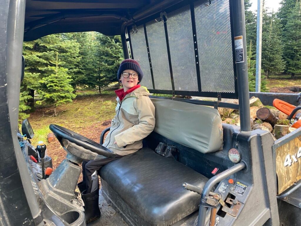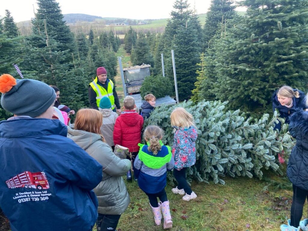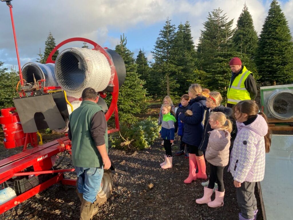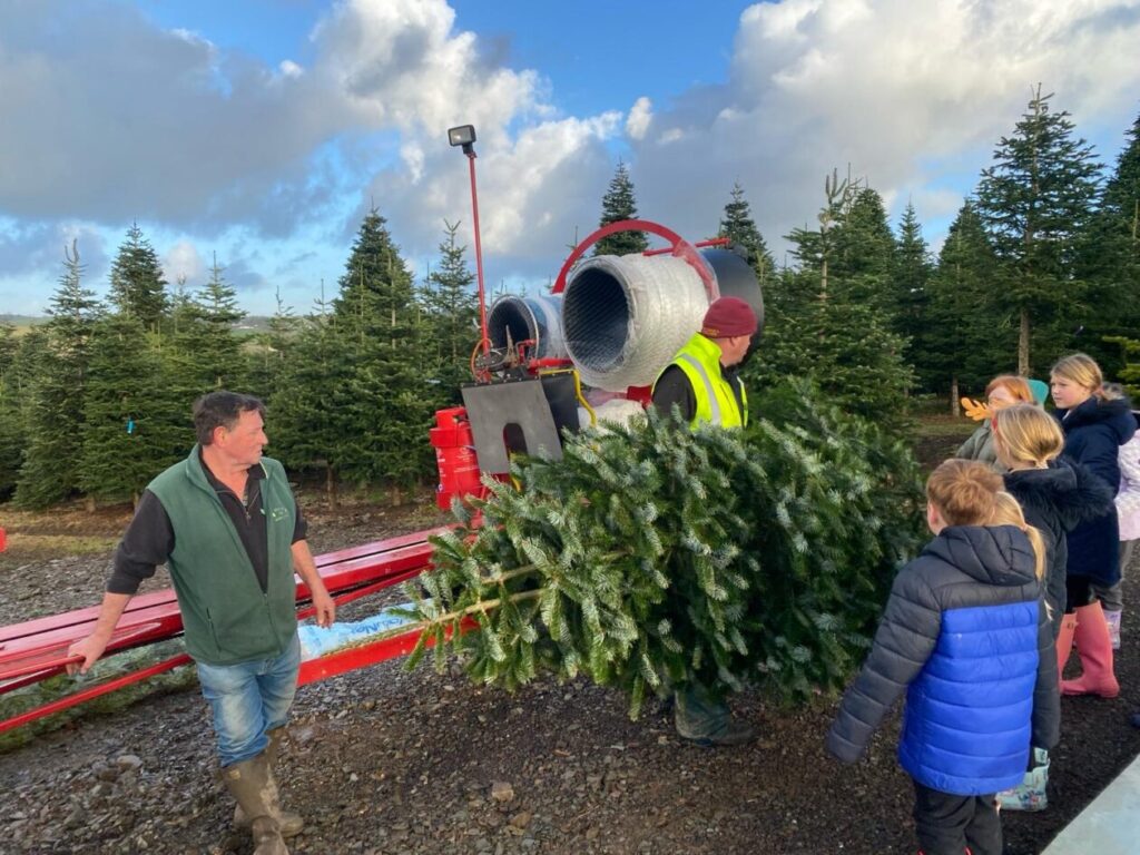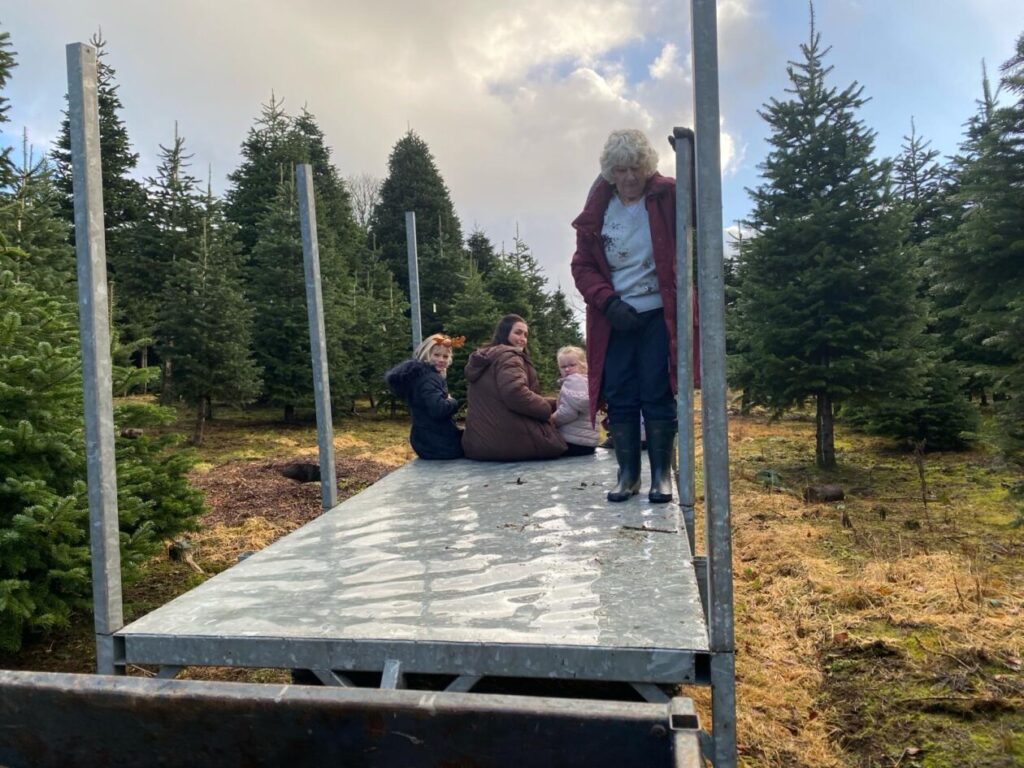 Today we went to a Christmas tree farm. We were picking up the 2 winning Christmas trees. First we got to walk around and find the sweets on the trees, then we picked the Christmas trees we wanted, then we pulled them up onto the trailer and we got to ride on them as well! Finally we watched them get wrapped up. I had a very fun day! – Indie
