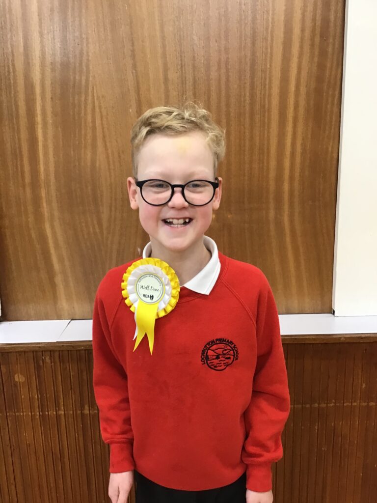 I got a rosette for horse riding. I do this every second Thursday. I got my rosette for going every time it is on. The horse I ride on is called Albert and I enjoy going there! – Ollie