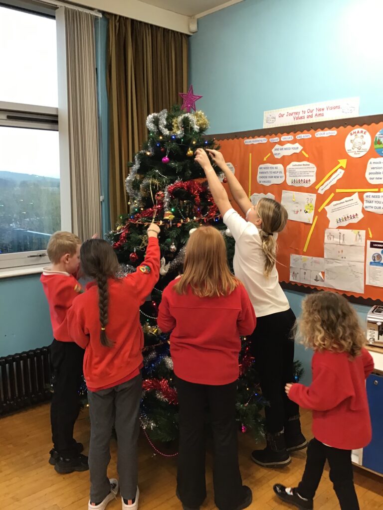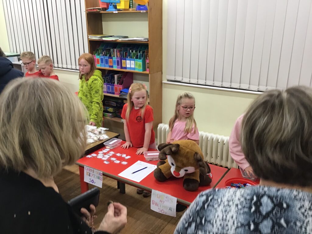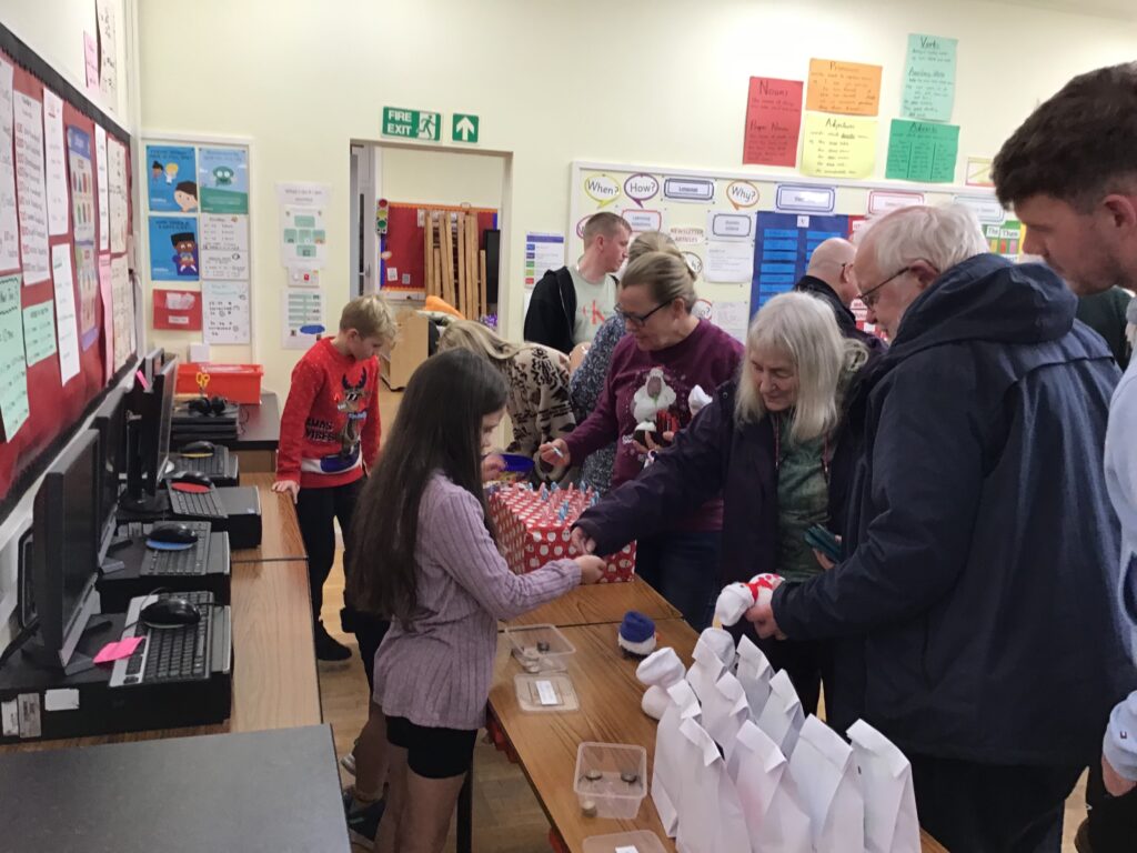 We had a Christmas celebration. We started the night with a nativity play. Then we got hot drinks and food that people baked. After that, we had the classrooms set up as stalls for the crafts we made and the stuff we bought. There were also games. I had a great night! We raised £205 for the the children’s ward at the hospital and the Lochfoot Gala. We also made £255 from hampers for the school. – Amelia