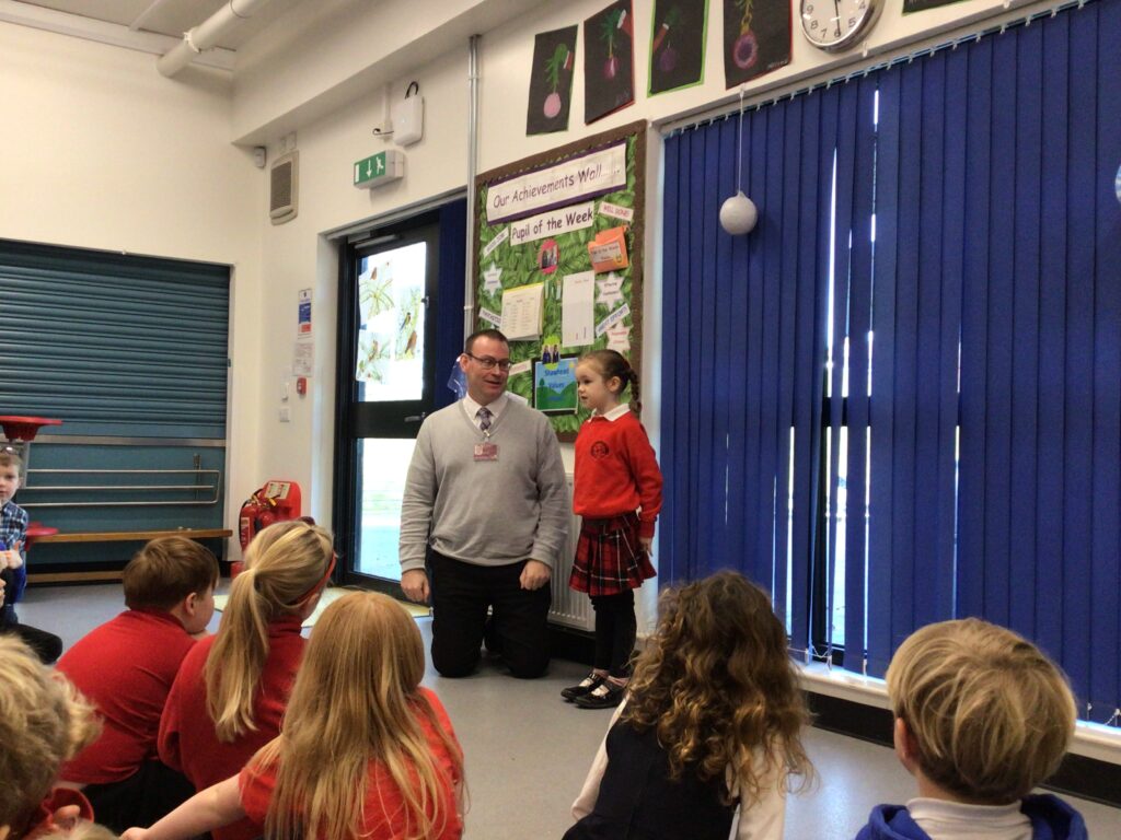 We had a partnership Christmas Party at Shawhead. First we played ‘Santa’s Coming’, this is when the teacher calls out an action and you have to do it, the last person to do it is out. Next we played the Chocolate game. You line up and if you roll a 6 on the dice you start putting on a scarf, hat and gloves and then scoop up a bit of chocolate, but if someone else rolls a 6 you have to take it all back off. We then played Christmas corners. After a snack break we played musical chairs. To finish off we played Grinch darts. We had to see who could get the closest to the nose. We both say our favourite game was ‘Santa’s Coming’. – Indie & Lilah