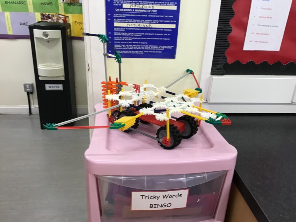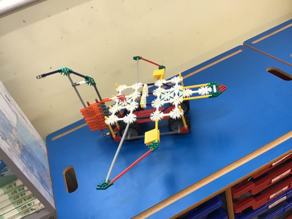 I made a vehicle that can drive, fly and be in the water using Knex. – Arleigh