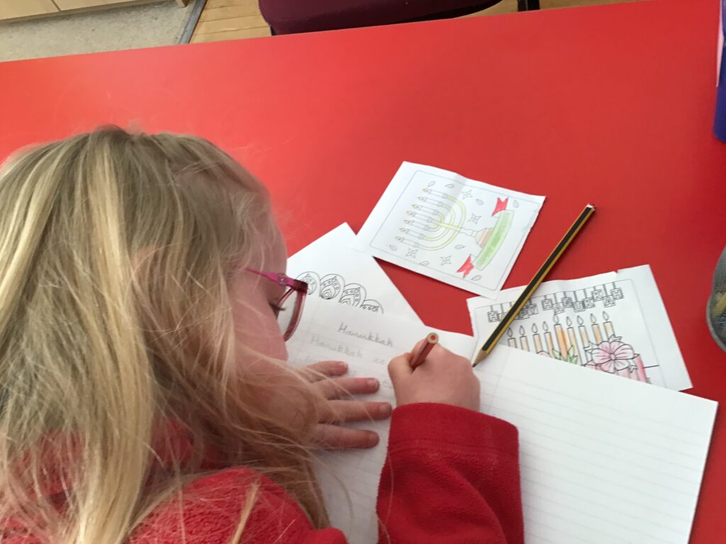 We were learning about Hanukkah for our Rights Respecting School badge, we have been learning about different holidays. We learned about the food they eat on this holiday and how long it lasts for. – Amelia