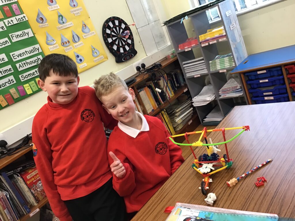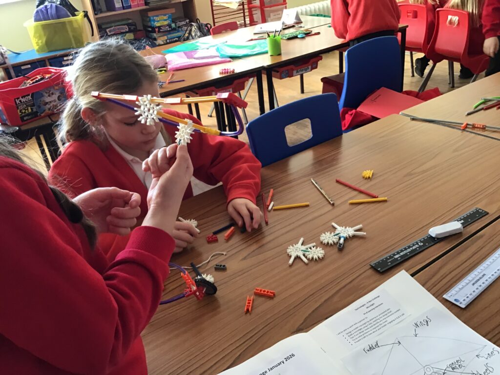 We have been making microlights with the Knex in pairs. My one has a propeller on the stick holding the wings up! – Finley