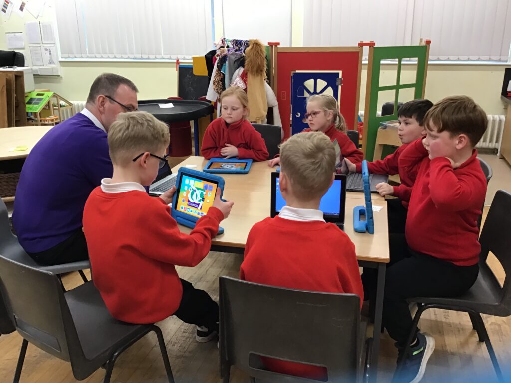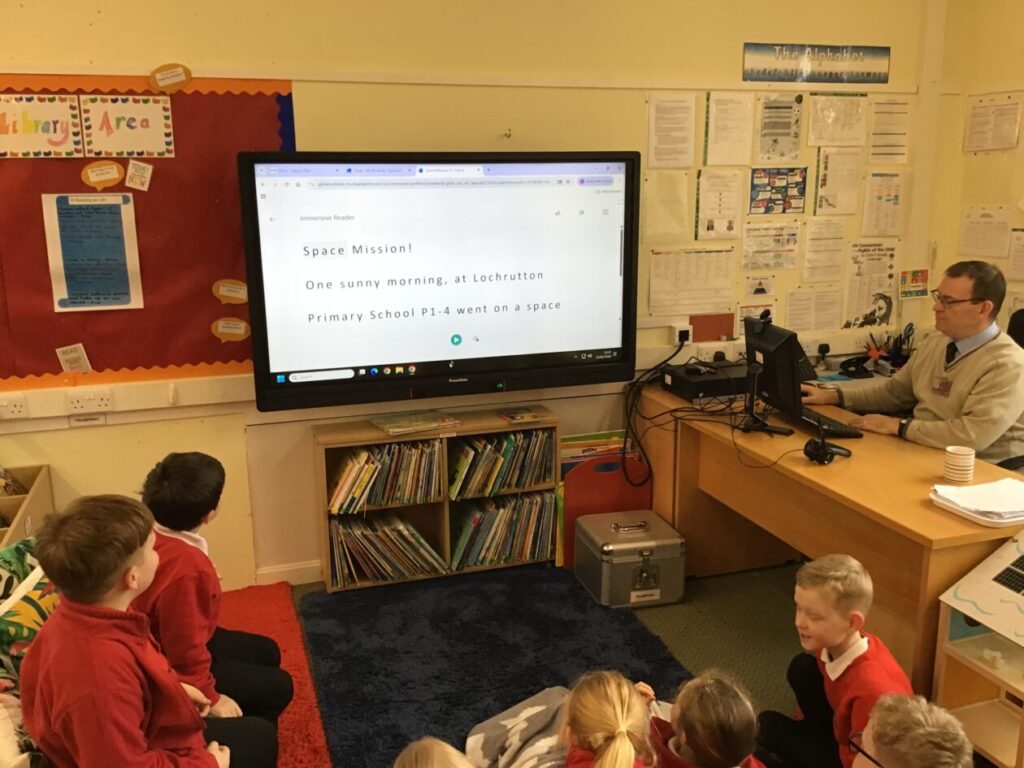 We were learning about a programme called Scratch. We first played with the coding using some haggis and made a background for them. We then copied our new Scots poem on to it and then we could listen to it back. – Kayden
