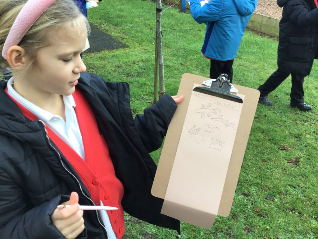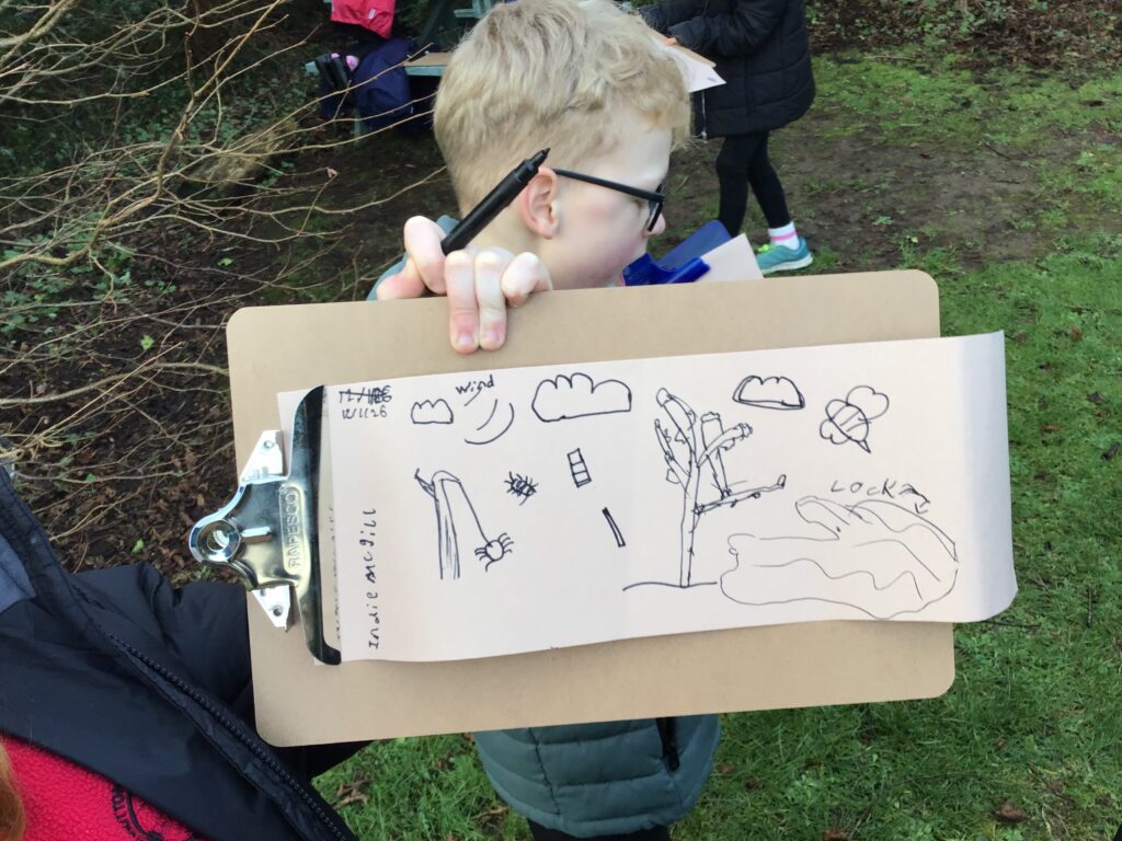 We were doing some outdoor learning and we were drawing pictures of what we could see and hear outside. I saw the Christmas Tree and heard a lot of wind! – Aurelia