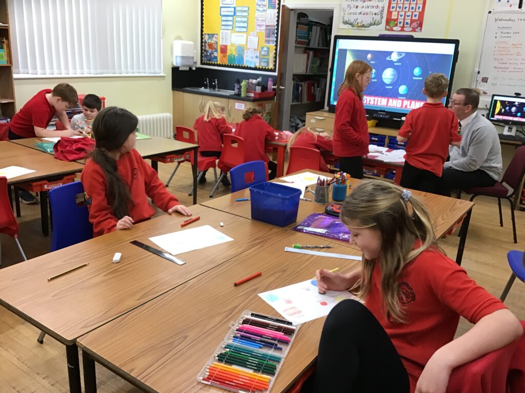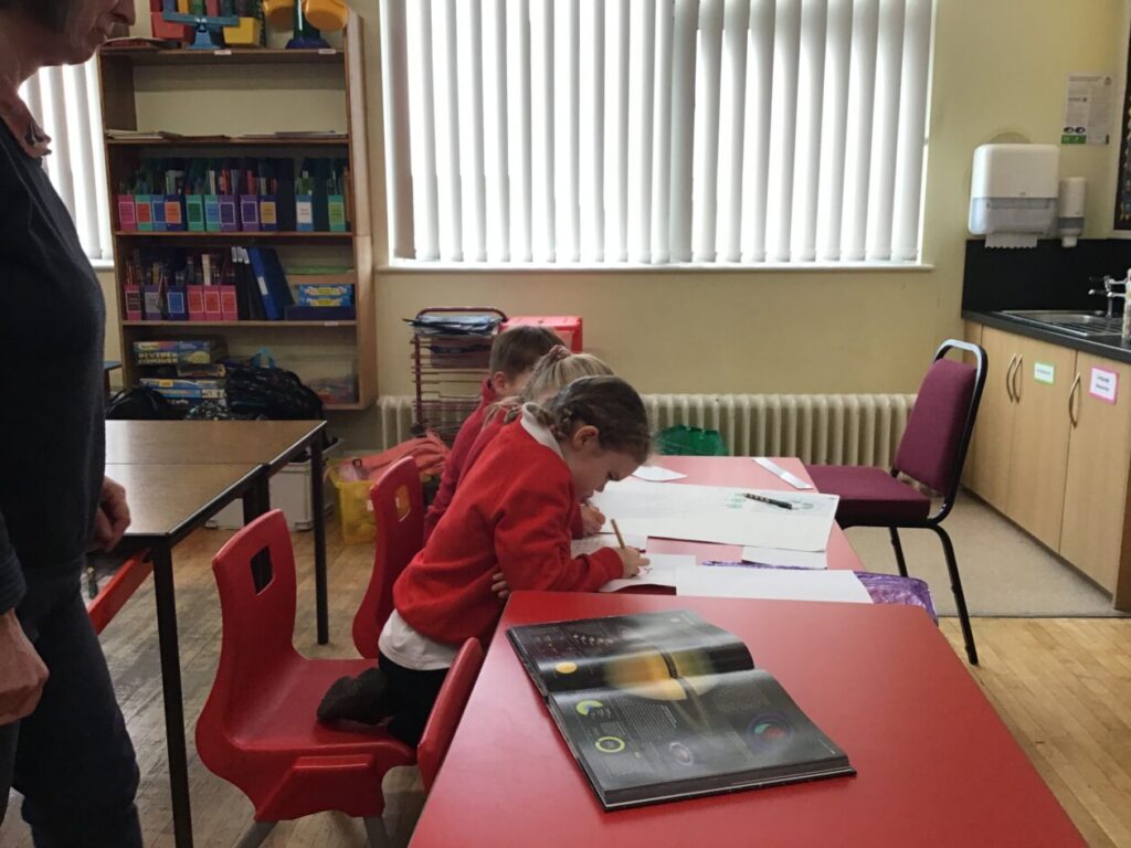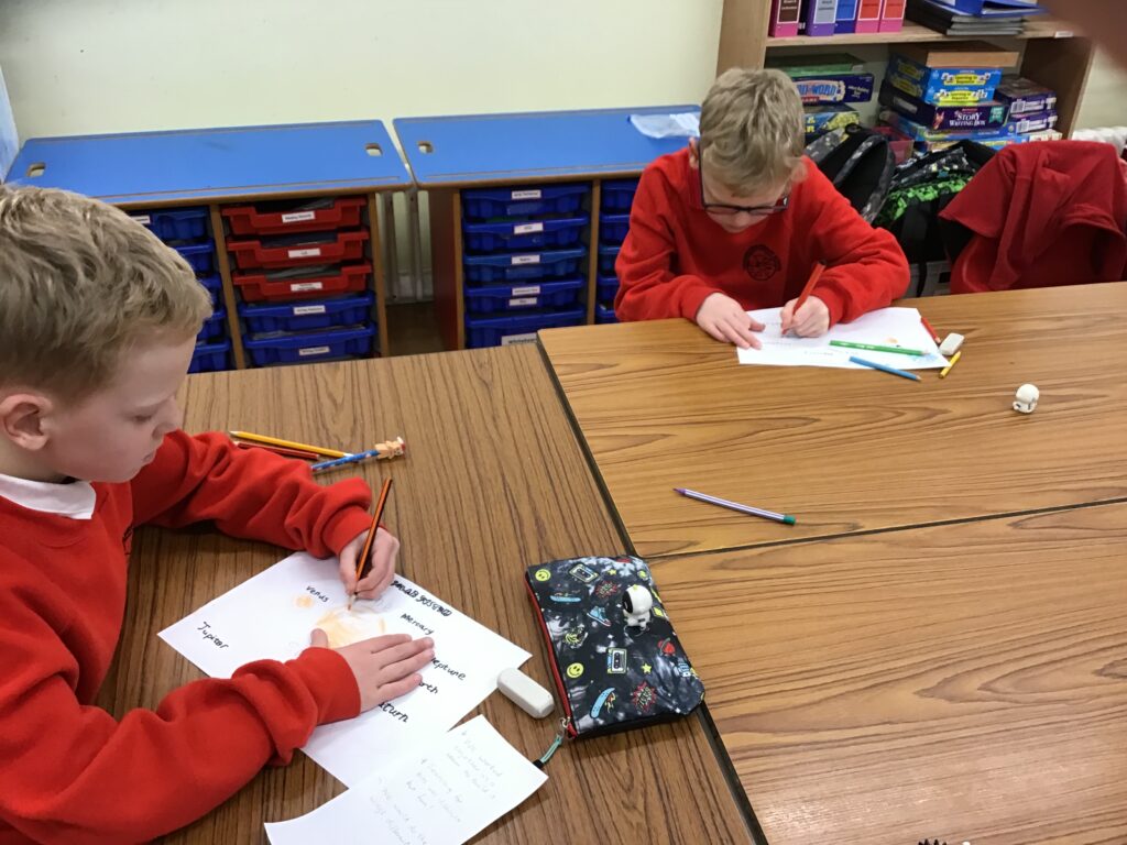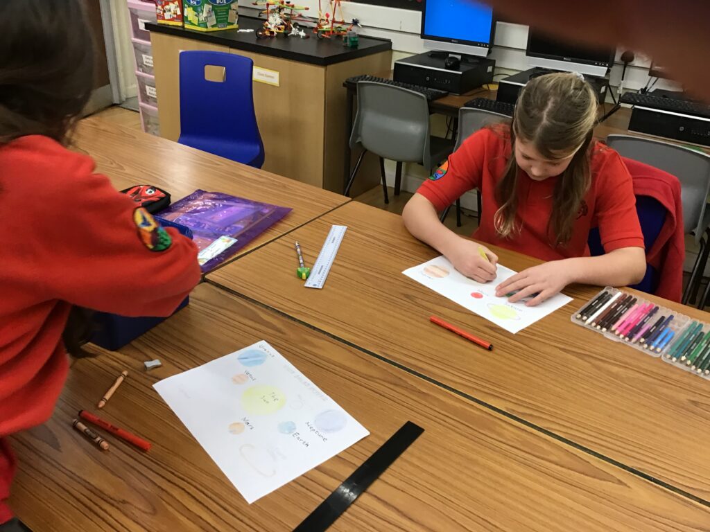 We were colouring in the planets the right colour for our space topic. – Aria