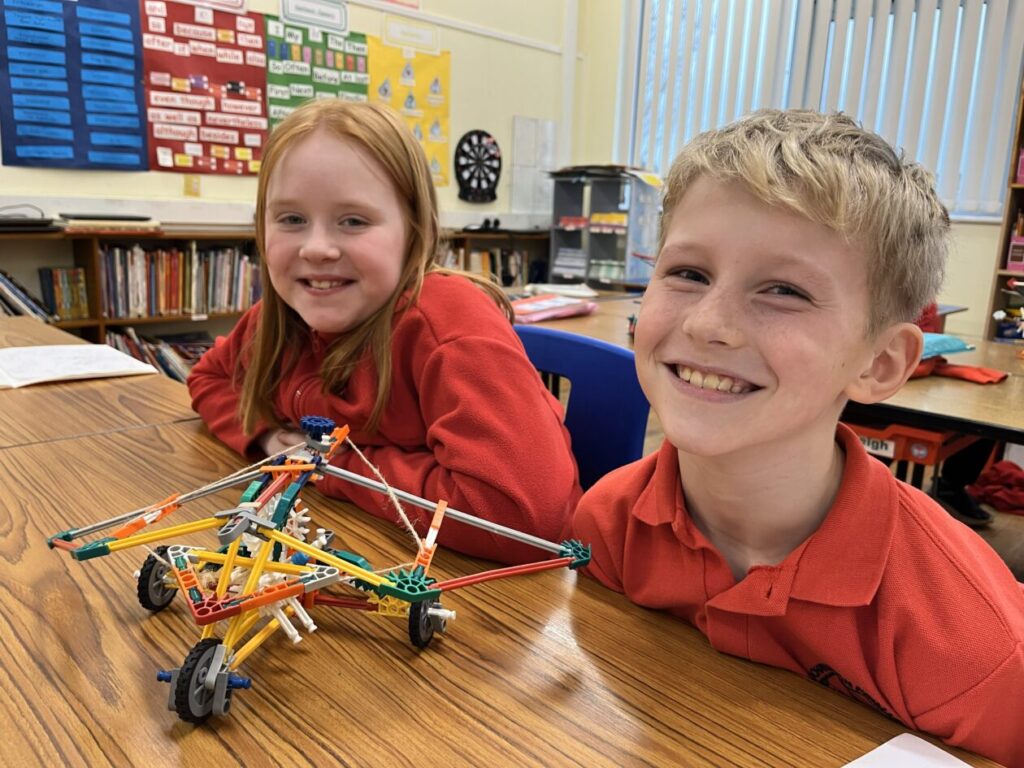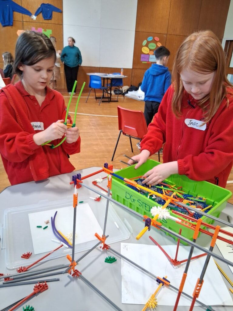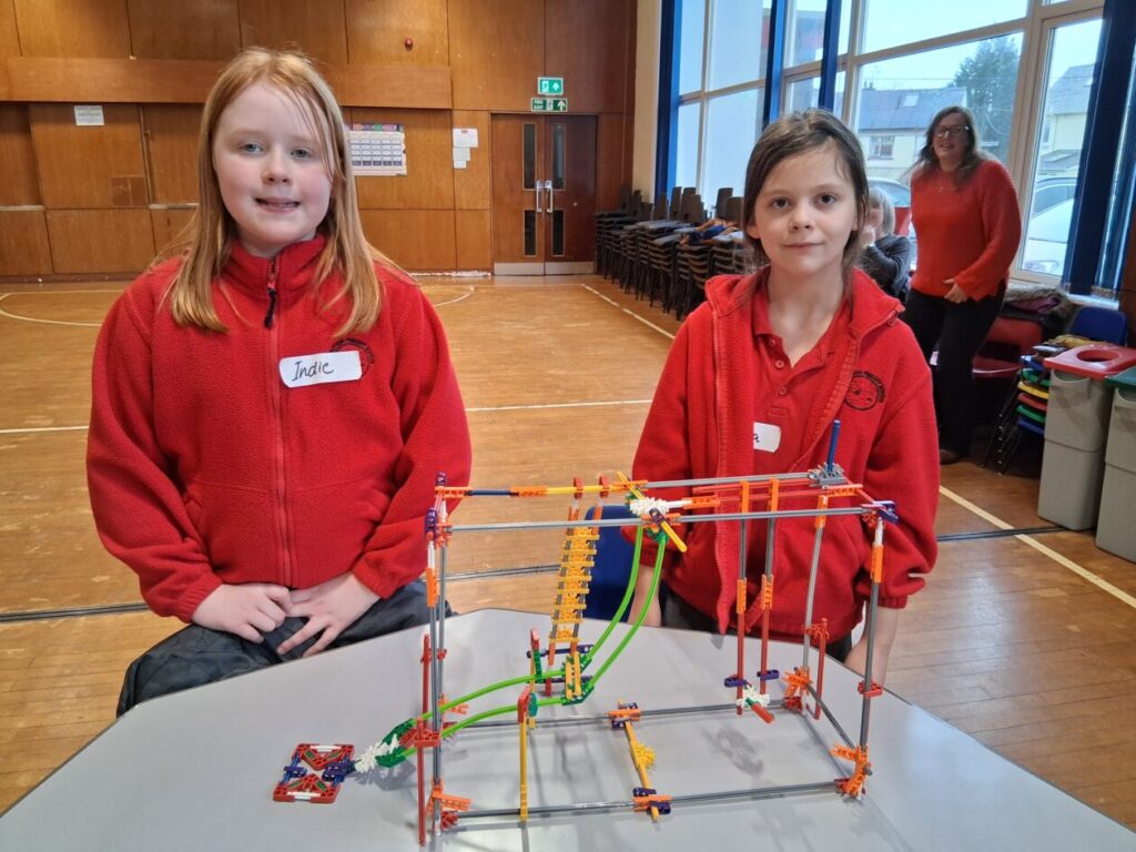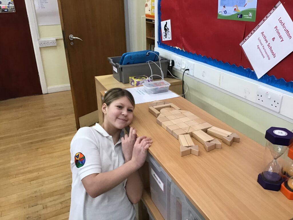 Me and India went to a K’nex challenge at Springholm. We had to build climbing frame equipment, on it we had to have something that would move with a lever. We had 5 minutes to plan and 55 minutes to build. We built a slide and a swing beside each other. There were 6 other schools there. We didn’t win but we had fun! – Amelia