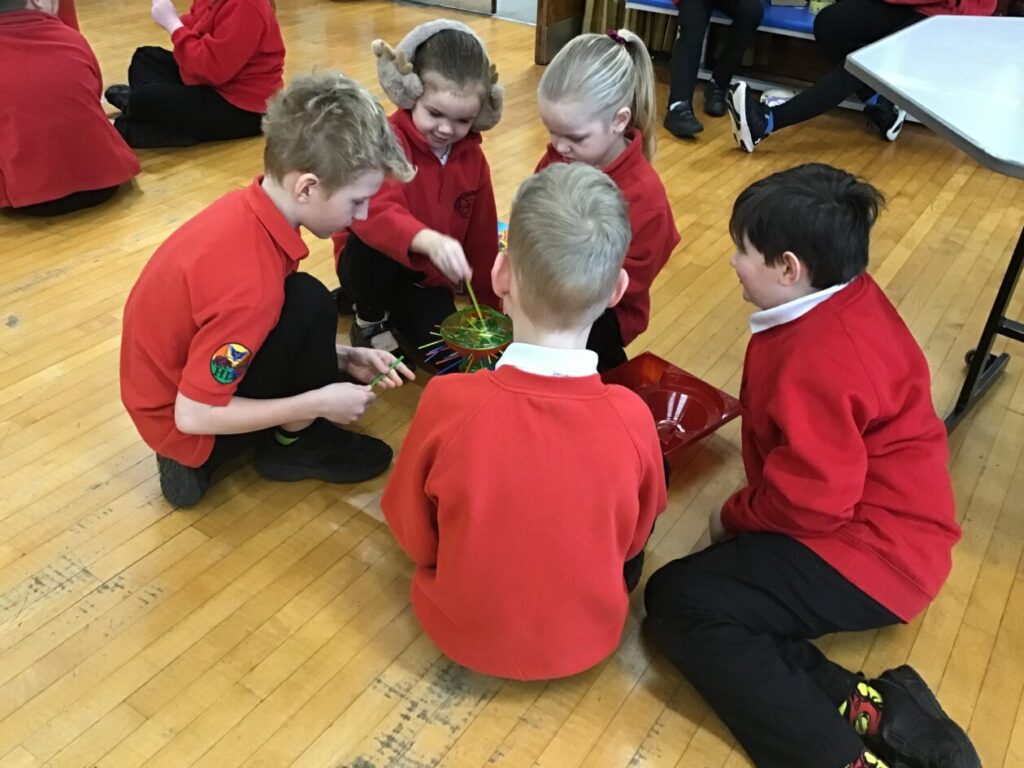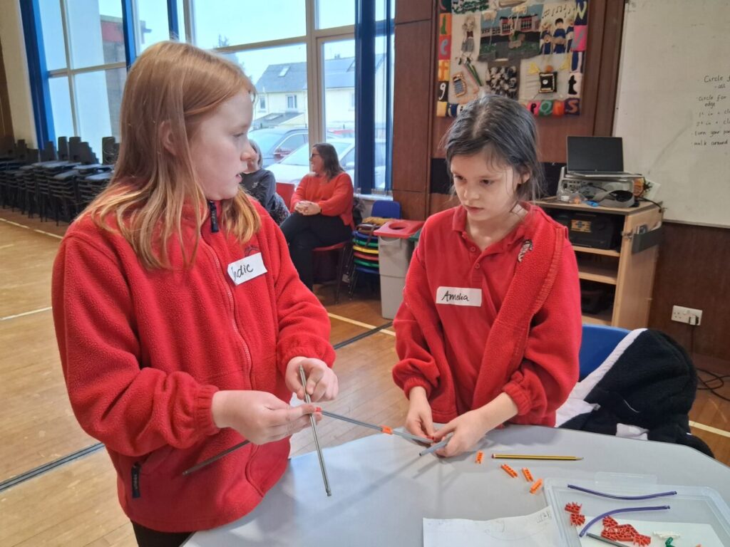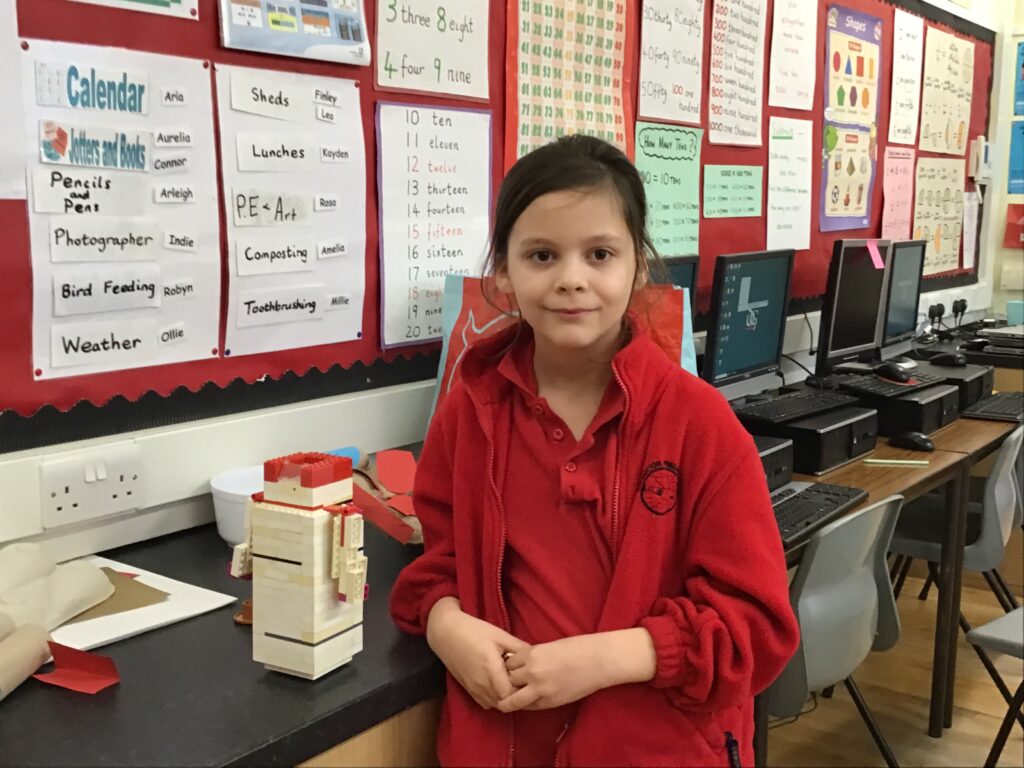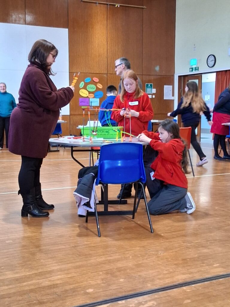 Me and India went to a K’nex challenge at Springholm. We had to build climbing frame equipment, on it we had to have something that would move with a lever. We had 5 minutes to plan and 55 minutes to build. We built a slide and a swing beside each other. There were 6 other schools there. We didn’t win but we had fun! – Amelia