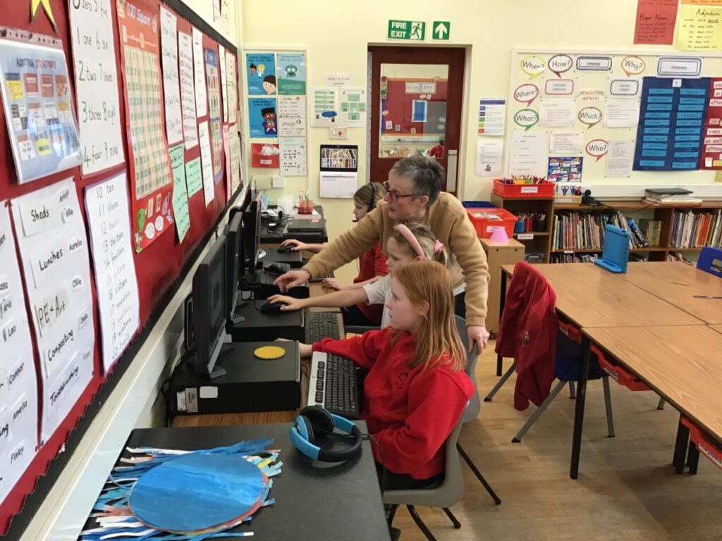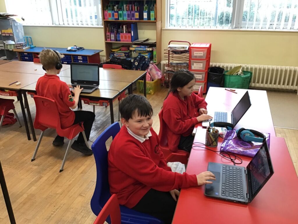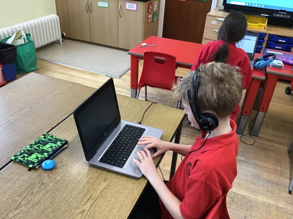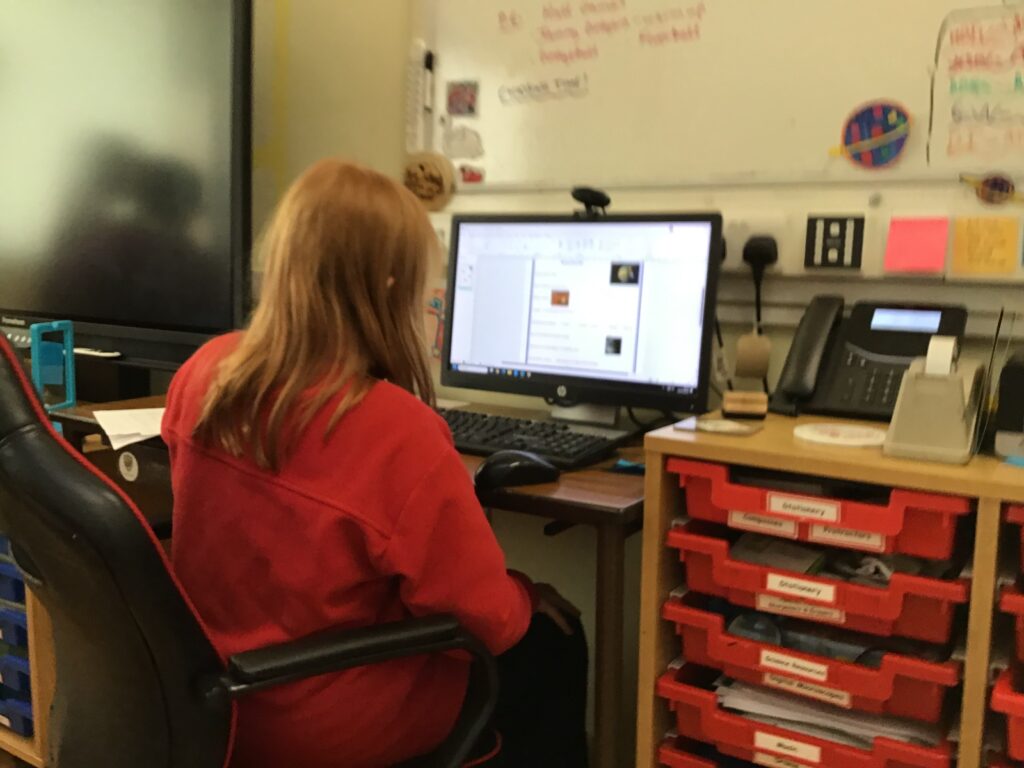 We were learning about Music Lab with Miss Cochrane. We made our own music by putting lots of sounds together, we then showed everyone our music. The younger children were learning about Word Online. – Arleigh