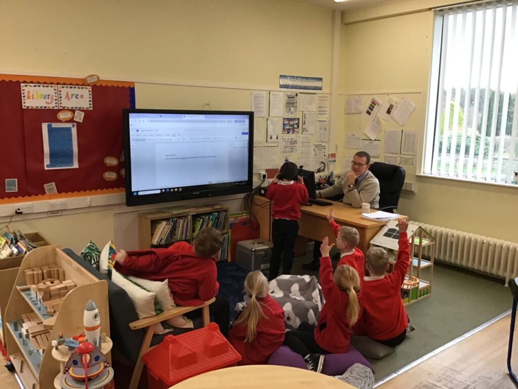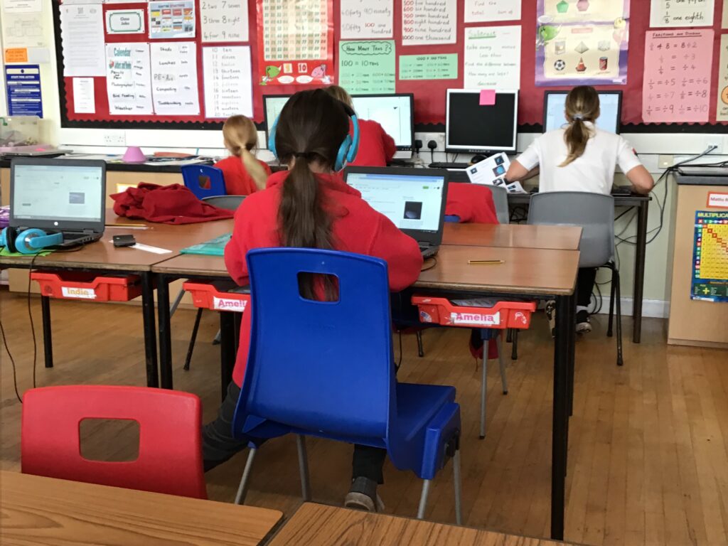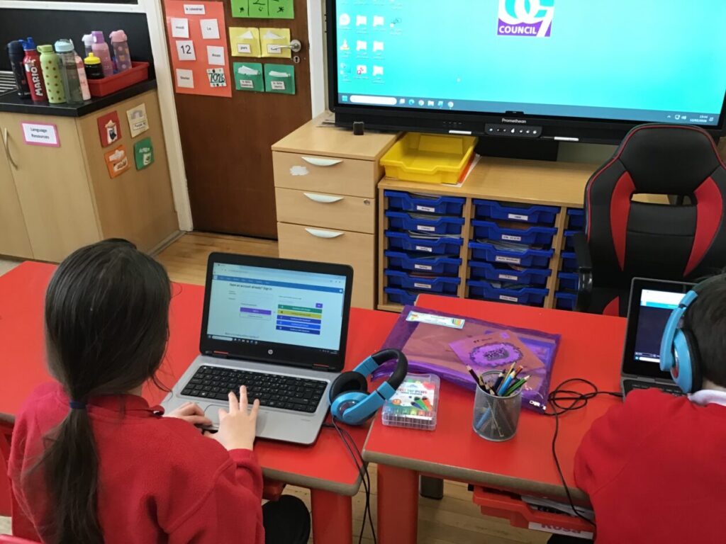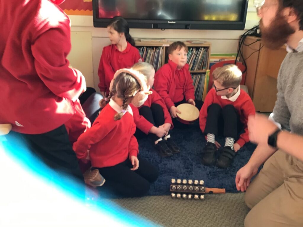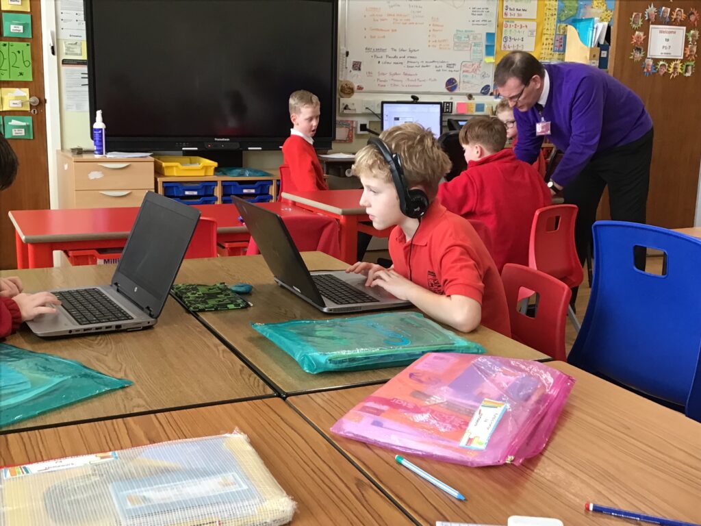 We were learning about Music Lab with Miss Cochrane. We made our own music by putting lots of sounds together, we then showed everyone our music. The younger children were learning about Word Online. – Arleigh