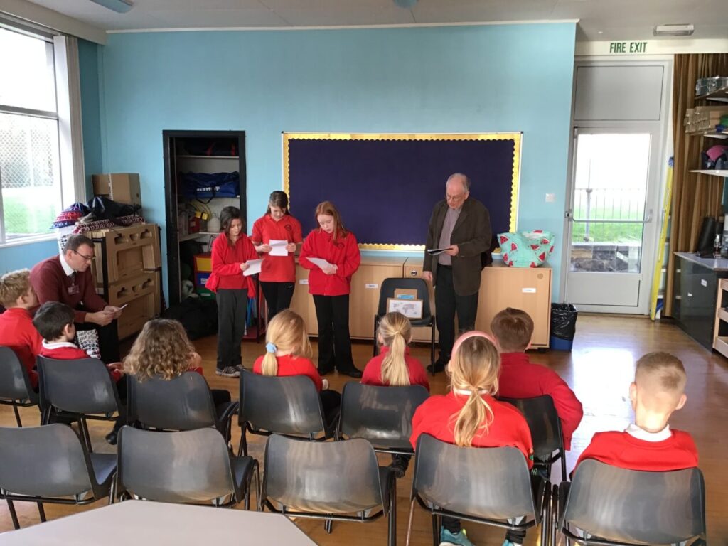 For assembly Mr Peacock came in. He was telling us to sometimes take the extra mile and also talking about travelling. Then me, Aria and Amelia read a poem called ‘The good Samaritan’. – Indie