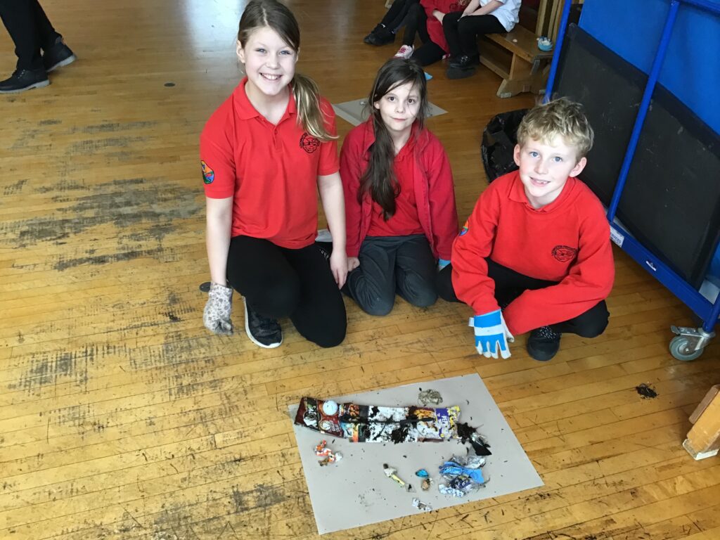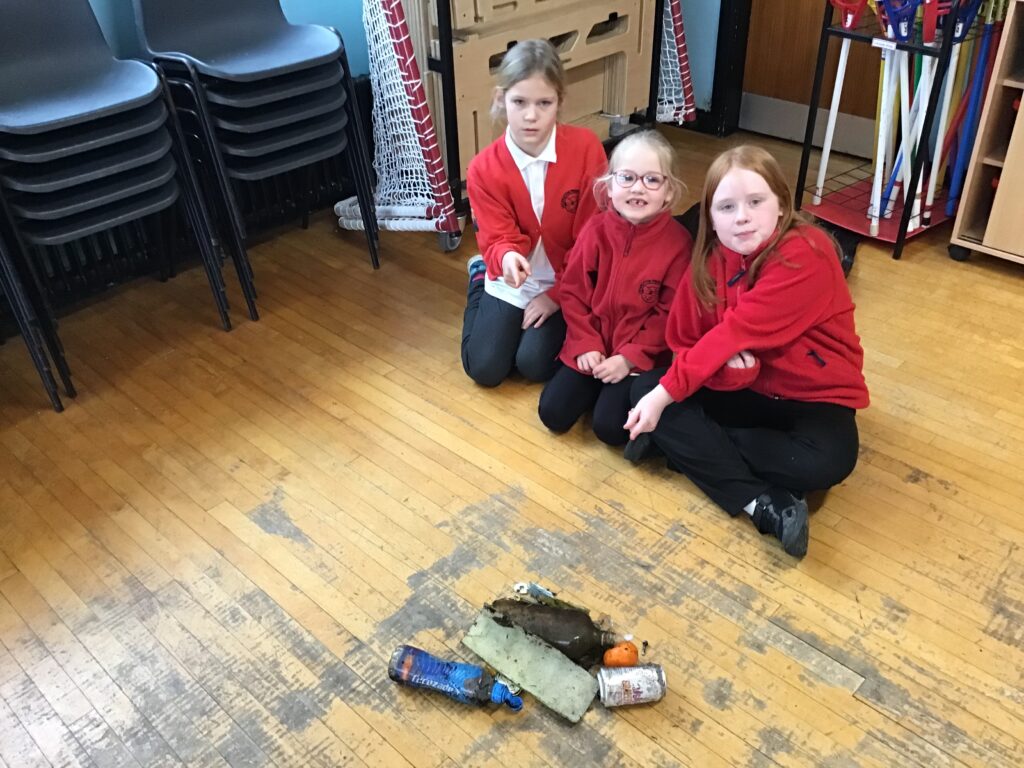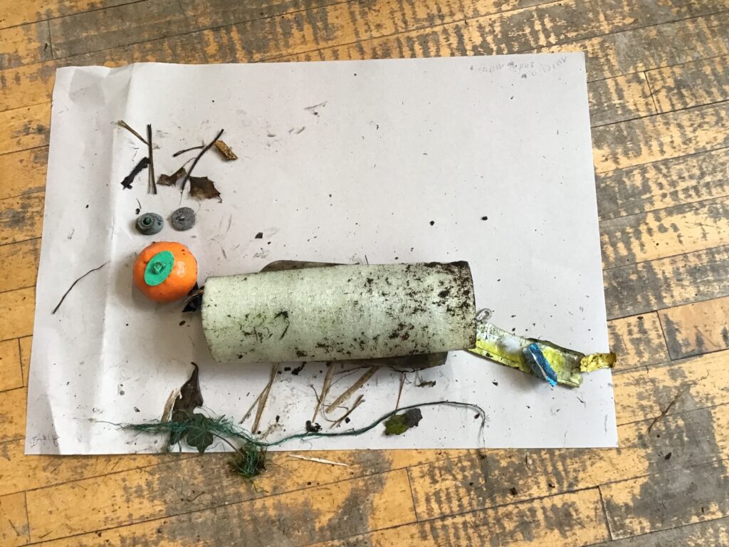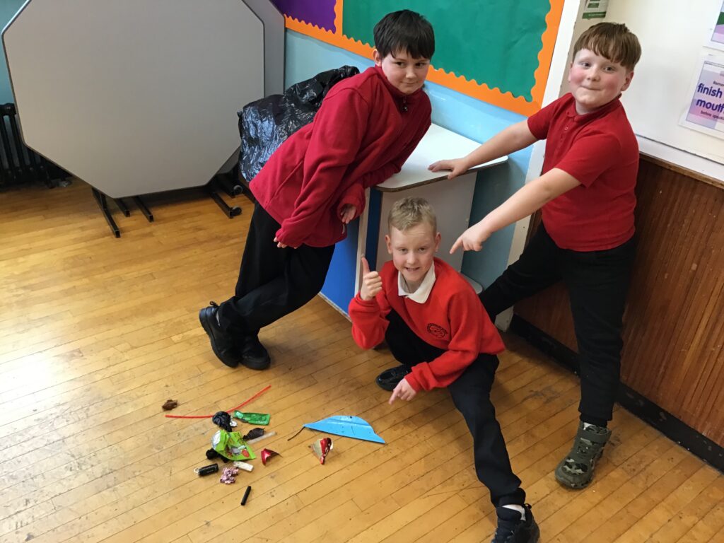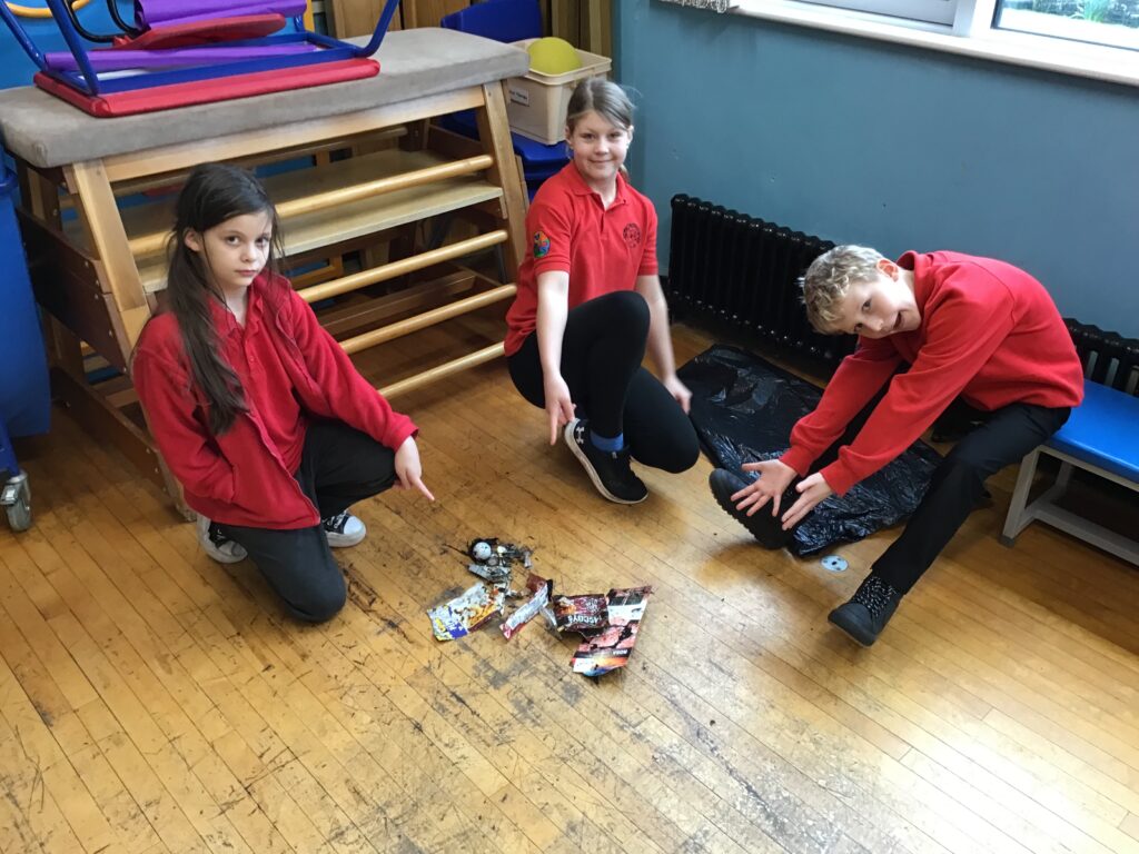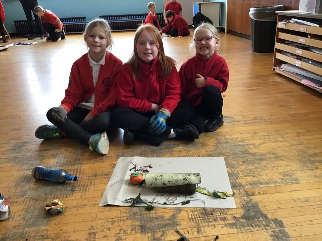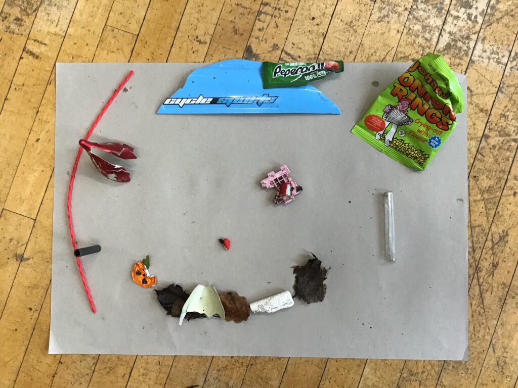 We went on a litter pick around the village. With the rubbish we found, we made a picture in groups of an animal. There wasn’t too much litter but this is a good thing! – Ollie