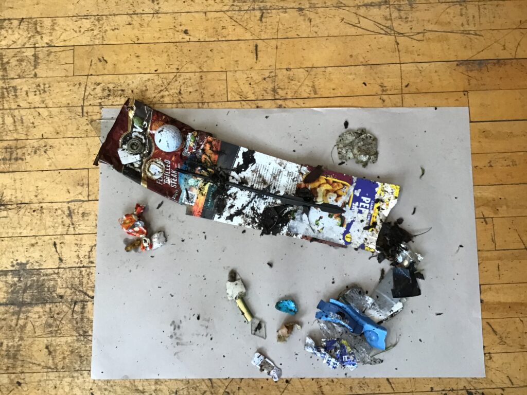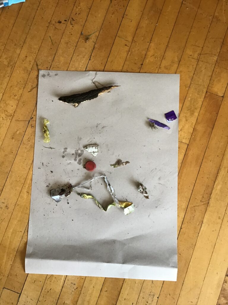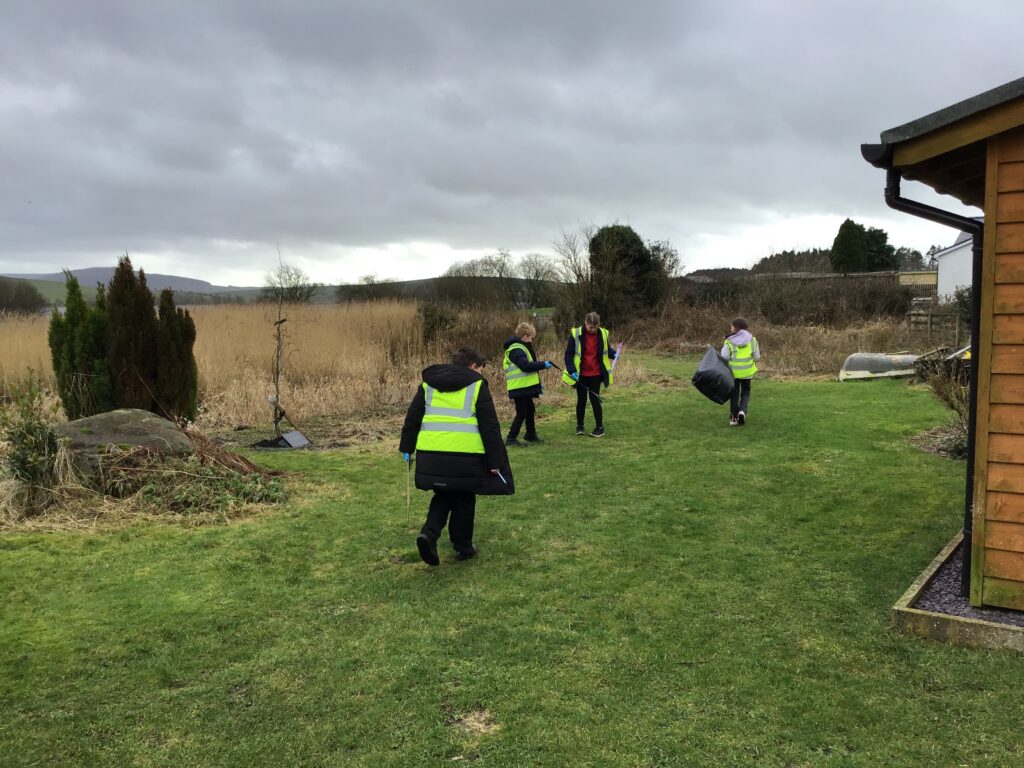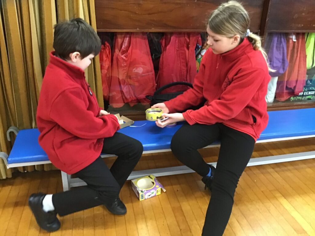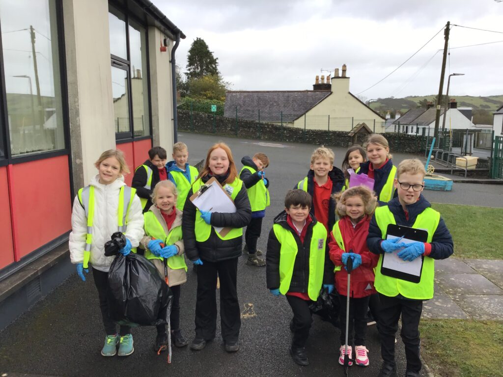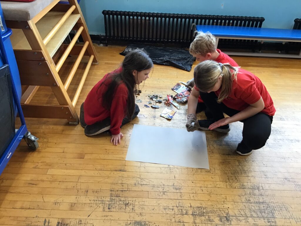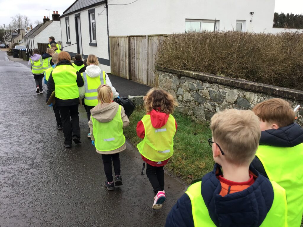We went on a litter pick around the village. With the rubbish we found, we made a picture in groups of an animal. There wasn’t too much litter but this is a good thing! – Ollie