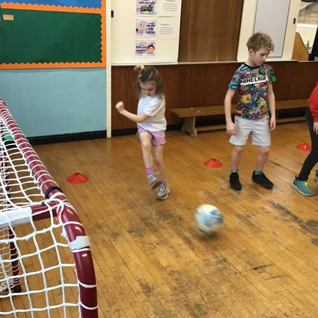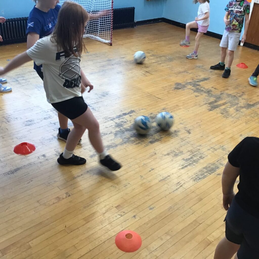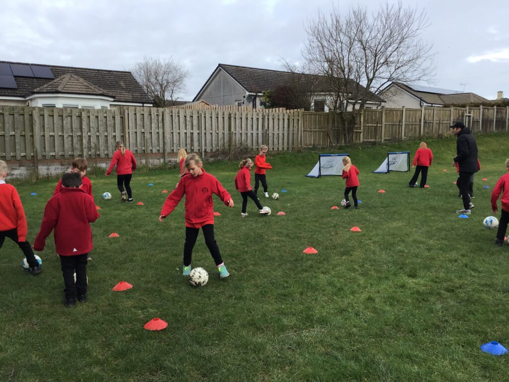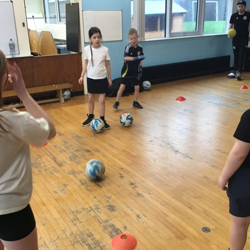 Queen of the South came into do some football with us. We had a go at some dribbling and shooting practice. I enjoy playing football! – Leo