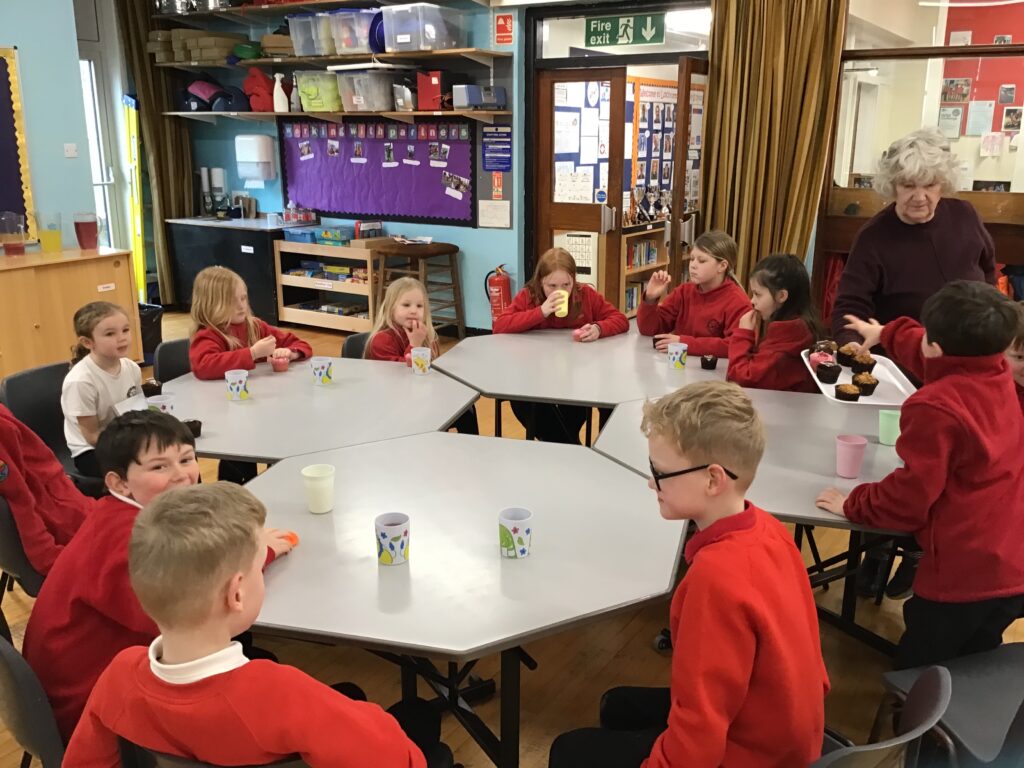 Rosa has moved school and we had a little party for her. We had cupcakes and gave Rosa a present. – Millie