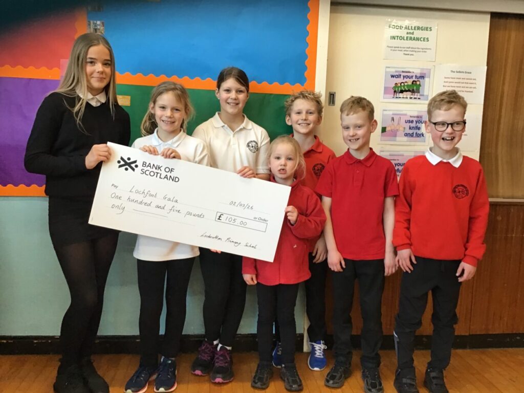 Sophie came down to the school to collect our cheque that we raised for the Lochfoot Gala. – Ollie