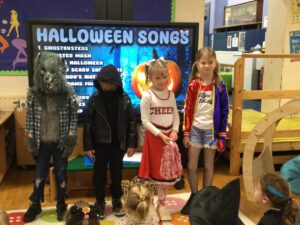 On halloween everyone dressed up as their halloween character and we had a parade. The best costume won a prize