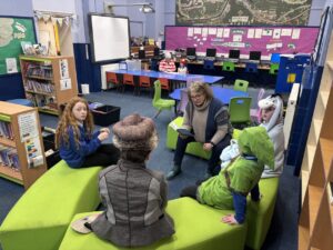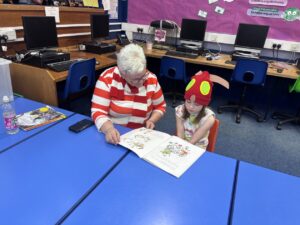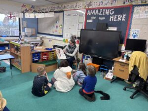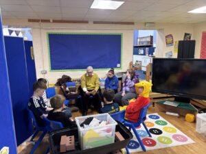 On Wednesdays a group of children learn how to play guitar songs with Mr Orr. We play songs such as I hear thunder, Peppa pig, twinkle twinkle, row row, happy birthday, jingle bells and London bridge. It is lots of fun. I am sad because Mr Orr is retiring. I hope we will get somebody new to take over.