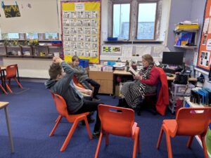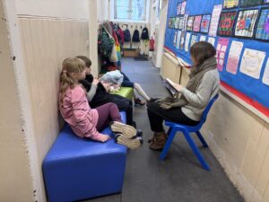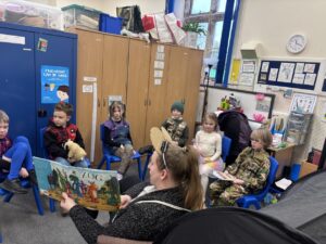 On Thursday 5th March, it was World Book Day, i dressed up as ey ore and my friend was winny the pooh. We had people from the village come in and read books. I listened to Narnia and Private Peaceful.