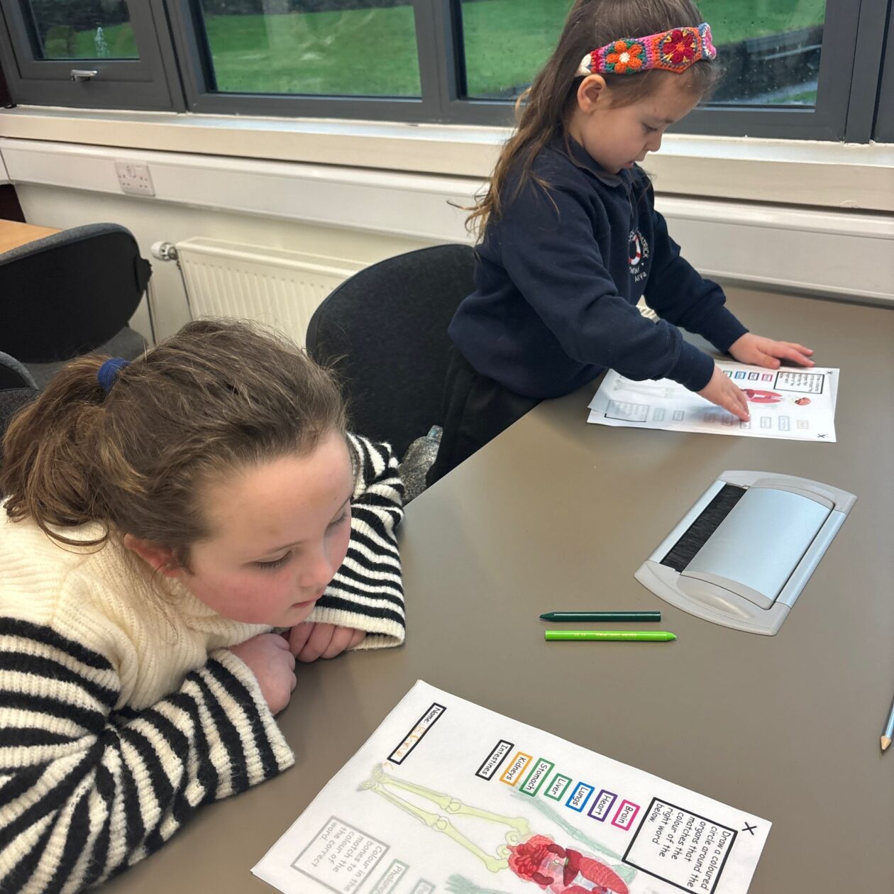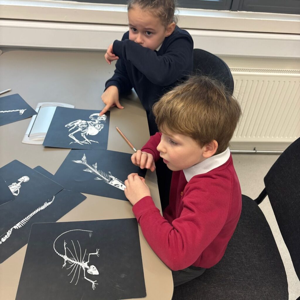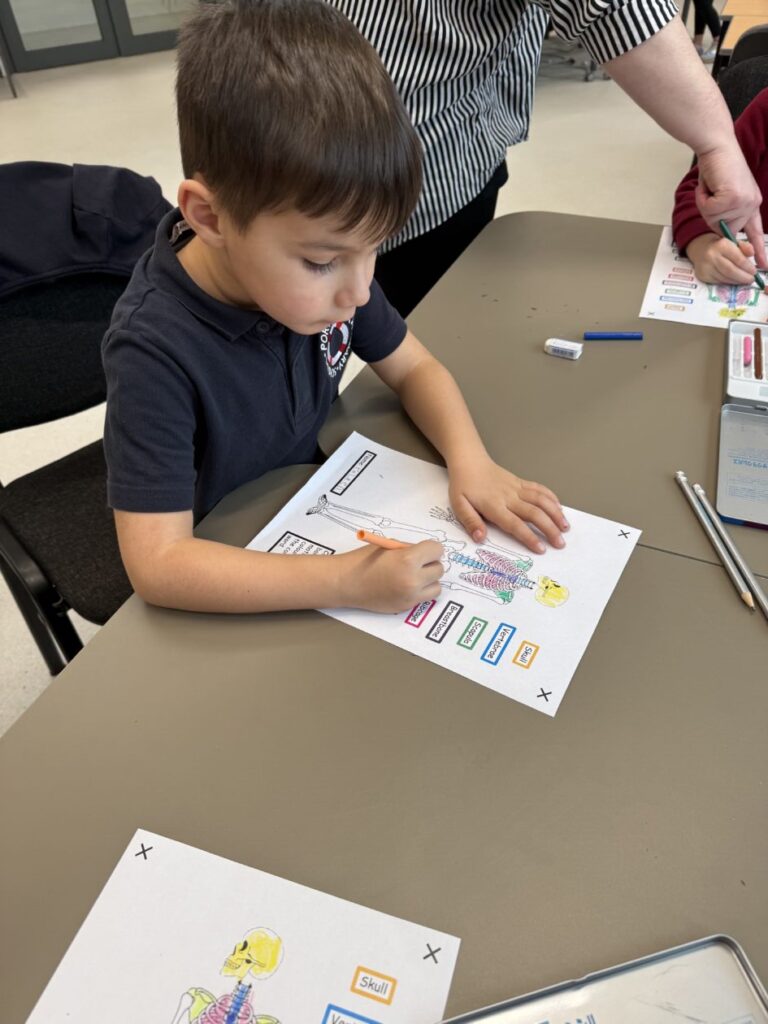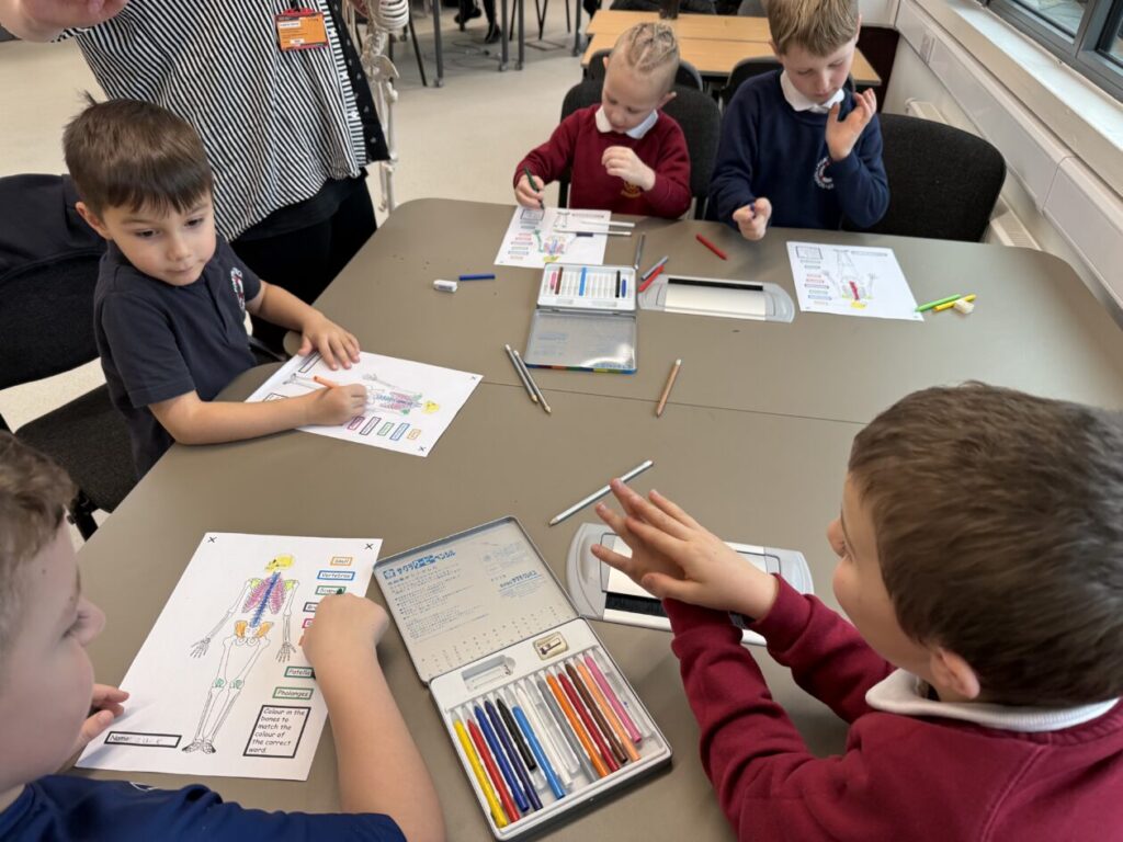 The second activity focused on learning about the human body, specifically different organs and how the skeleton protects them. Pupils explored how the rib cage protects the heart and lungs and how the skull protects the brain. This activity supported the development of communication and collaboration metaskills, as pupils worked together, listened to one another, and confidently explained their learning.