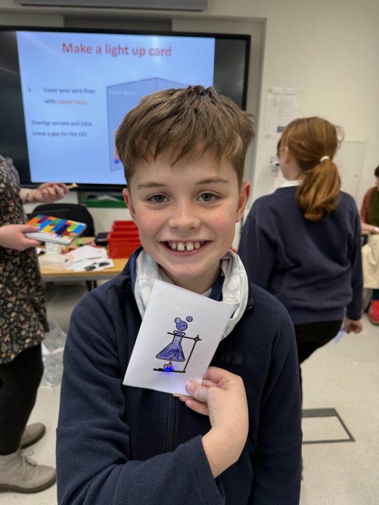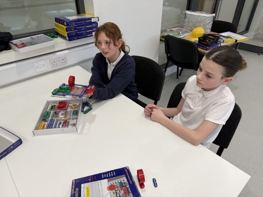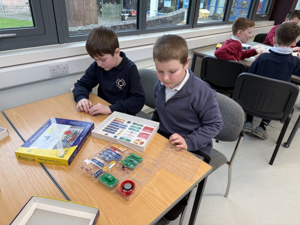 During the session, pupils learned all about electrical circuits and the flow of electrons. They explored how electricity travels around a circuit and discovered that a complete circuit is needed for electrical components to work. Pupils also investigated different materials to find out which are good conductors and which act as insulators, developing their understanding through practical experimentation.