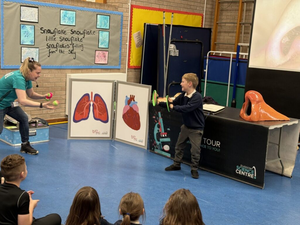 This week our school was delighted to welcome the Glasgow Science Centre, who delivered an inspiring, hands-on workshop for all classes from Primary 1 to Primary 7. Their team helped pupils explore the fascinating journey oxygen takes around the body, introducing them to the roles of the lungs, larynx, arteries, veins, and other vital body parts.