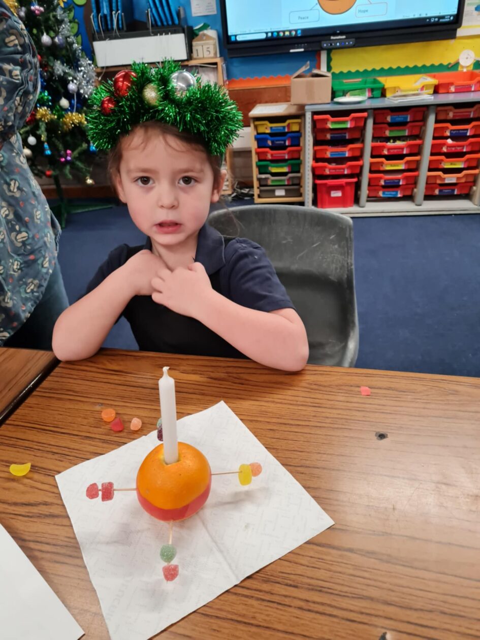 The children thoroughly enjoyed creating their own Christingles as part of our Christmas celebrations. With plenty of colourful ribbon and sweet treats, each Christingle was carefully made and beautifully unique. The experience was made even more special when we lit the candle, symbolising Christ’s Light and looking ahead to its meaning on Christmas Day.