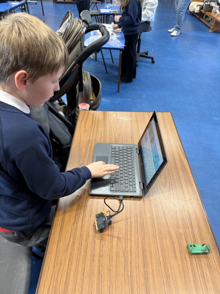 Visitors explored buoyancy experiments, testing how many cubes could fit on their tinfoil boats. At the coding and robotics stations, children demonstrated problem-solving skills by programming simple sequences and controlling robots, showcasing their growing digital confidence.