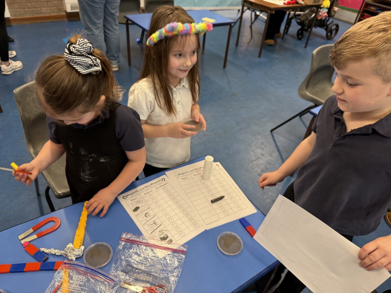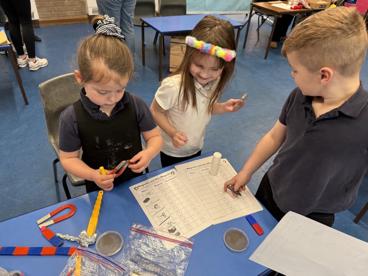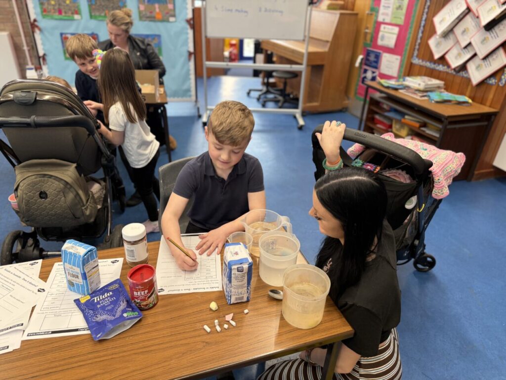 In other areas, families investigated dissolving, learning how different substances behave in water, and even tried their hand at battery making, discovering how energy can be created using everyday materials. The magnetism activities sparked curiosity as children explored forces and attraction, while the ever-popular slime making station brought plenty of fun (and a bit of mess!) as pupils explored changes in materials.