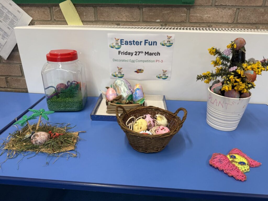 One of the highlights of the day was judging our Easter Egg Art competition. Every single pupil in the school entered the competition, and we were so impressed by the effort, imagination and creativity shown in every piece. It certainly wasn’t an easy job to judge because all the entries were fabulous. The children should be very proud of their amazing work.