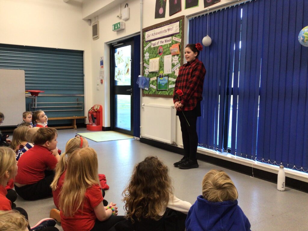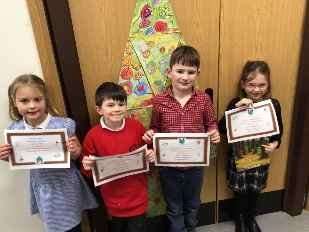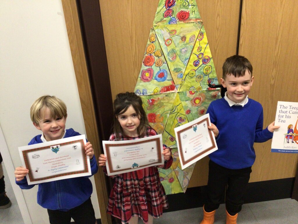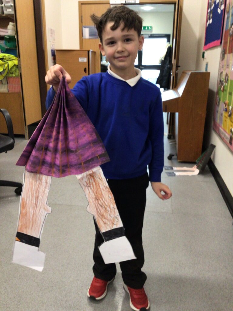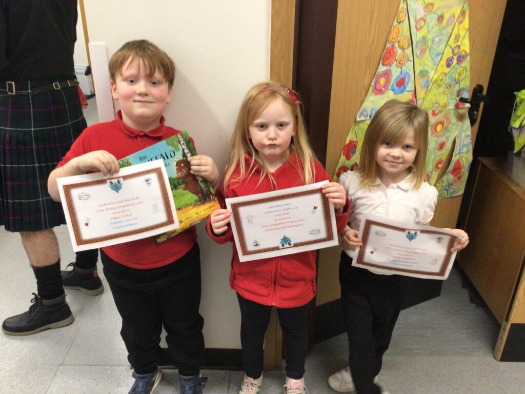 We had a partnership Burns day with Lochrutton. We started with saying our poems to everyone, we then moved on to making kilts with legs sticking out. We then had an address to the haggis at lunchtime and found out the winners to the poetry competition. We ended the day with a Scottish quiz! – Jenny & Zara