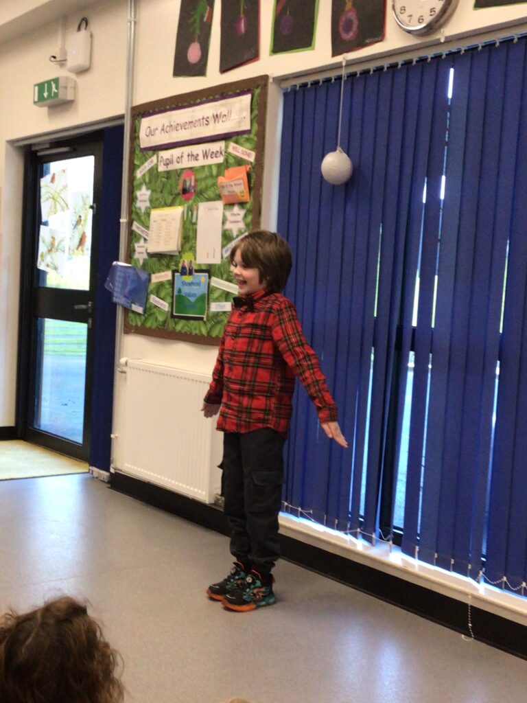 We took part in the second part of sports day. We started with the potted sports, which were an obstacle course, netball shoot, space hoppers, hurdles and slalom runs. We then did our running races, which were the sprint, egg and spoon, sack race and the bean bag race. We also did a preschool race and a parent race. The winning houses were both Scaur and Braco. Jackson also won the Partnership Sports Person Award for super team work, trying his best and being supportive of his peers across both sports afternoons. Both of our favourite part was the space hopper race. – Roddy & Bobby