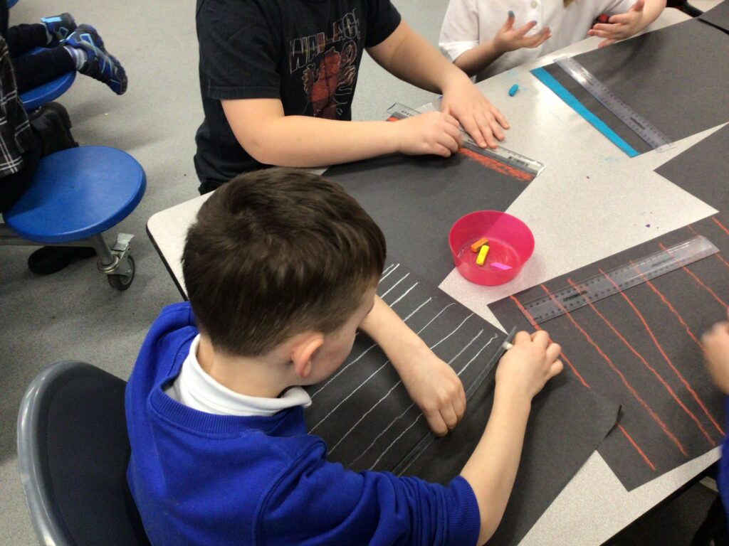 We had a partnership Burns day here. We had our poetry competition where we had to say a Scots poem in front of the whole school and the judges. After break we enjoyed some Scottish dancing together. After lunch we drew our face with an emotion using oil pastels. We then made a tartan background for it and wrote our emotion using the Scots word. The words we used were drookit and blithe! – Millie & Zara