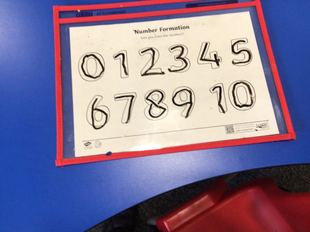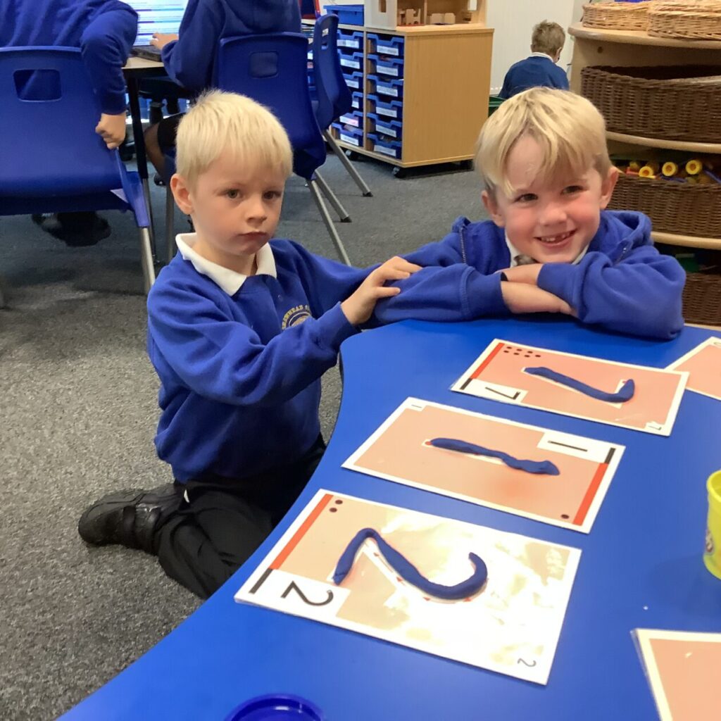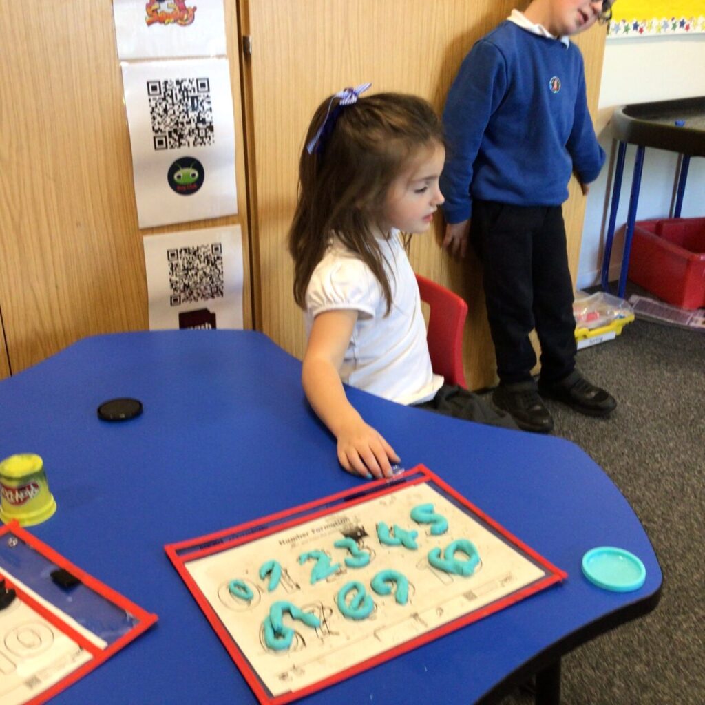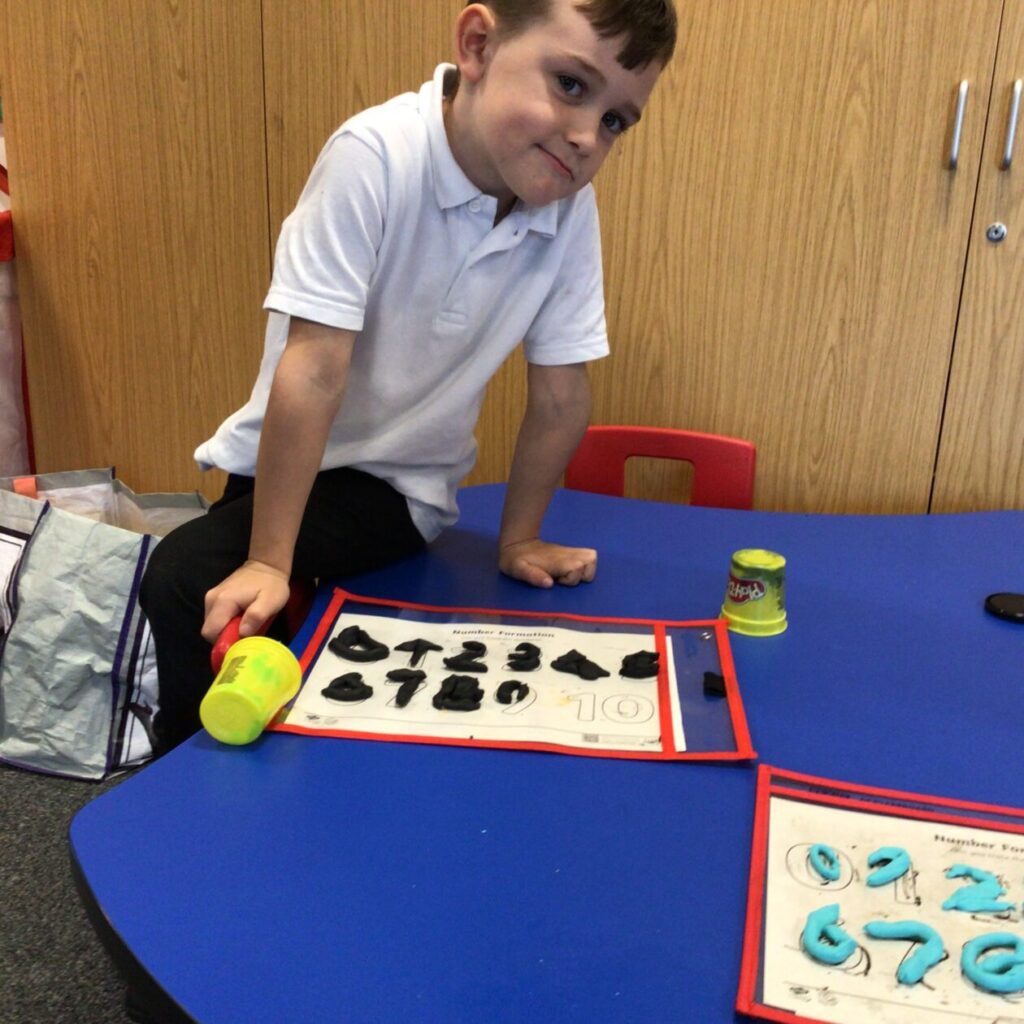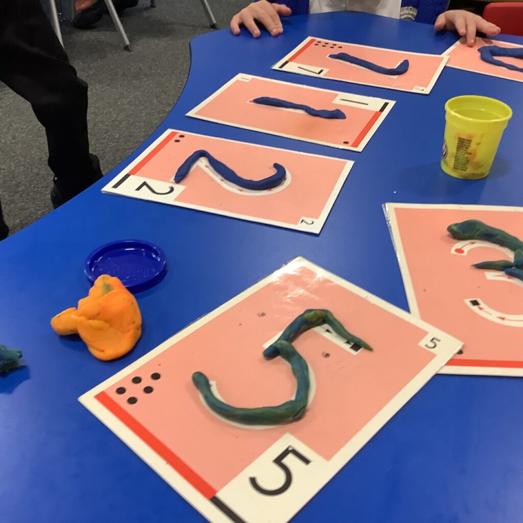 The P1’s have been making their sounds with Play-doh and practicing writing their numbers. – Bessie