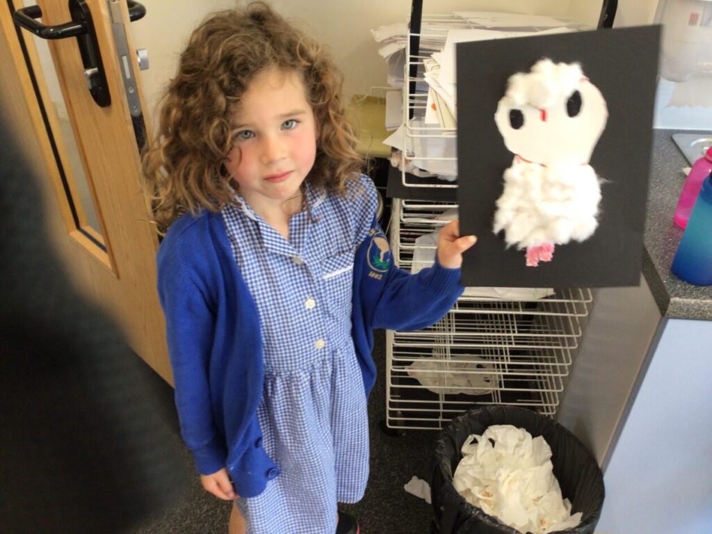 We were making dramas of Plop the barn owl. My group done the middle part of the story and I was the cat who spoke to Plop. – Rosie