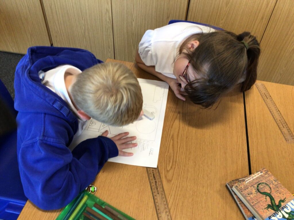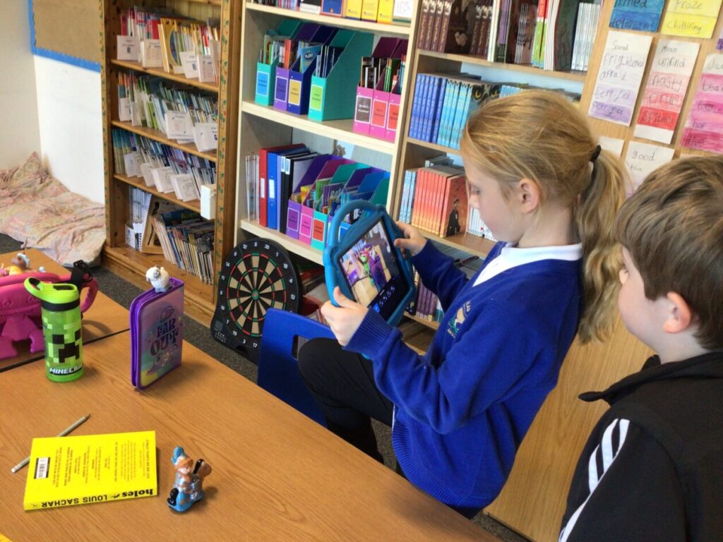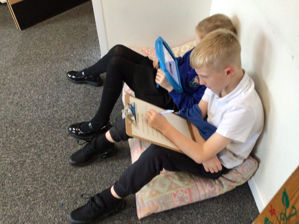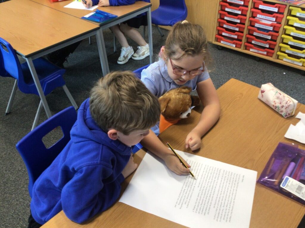 We were reading and highlighting a text about ‘Holes’ which is our Topic this term. We were highlighting interesting punctuation, adjectives, similes and lots more. – Jesse
