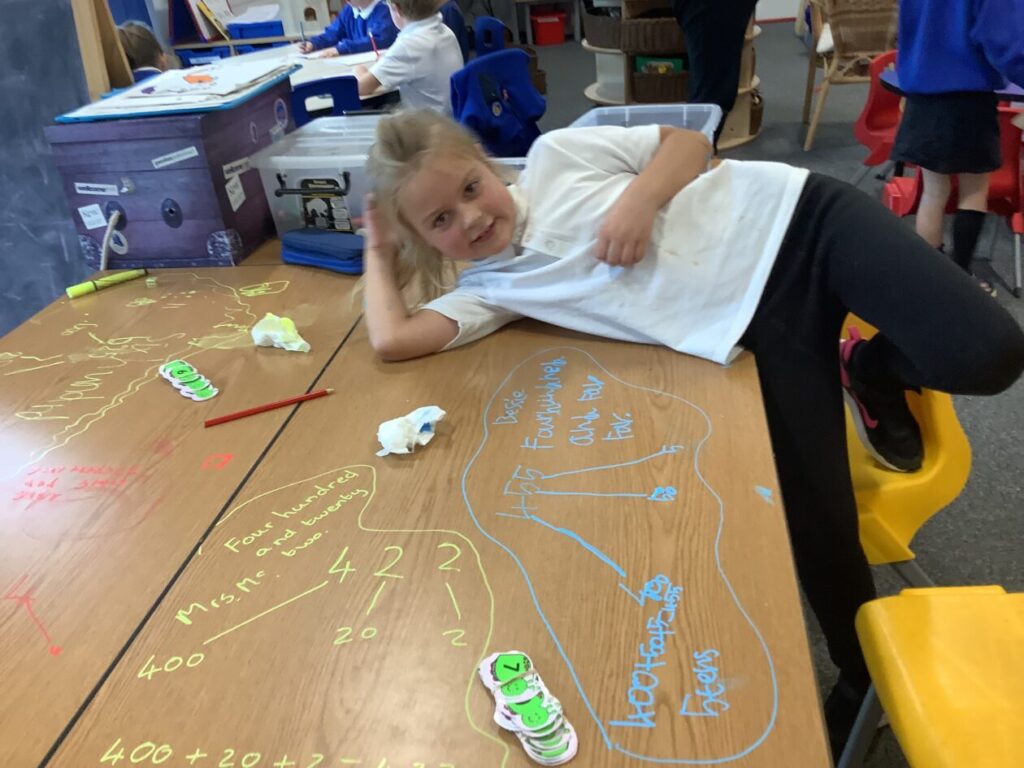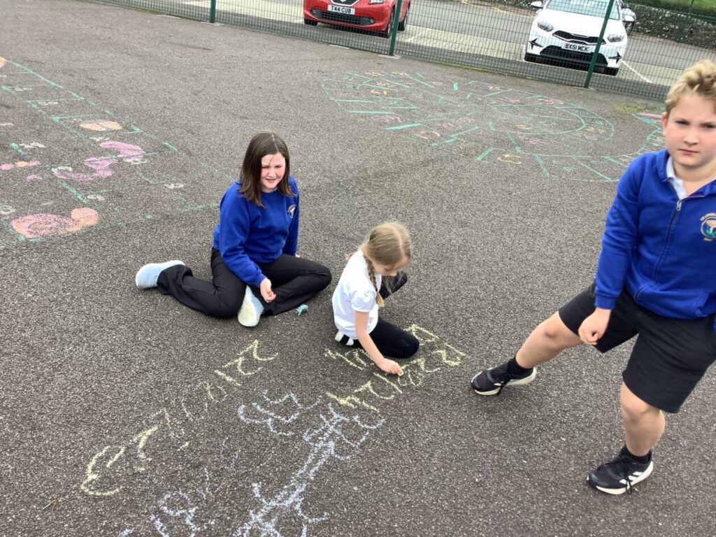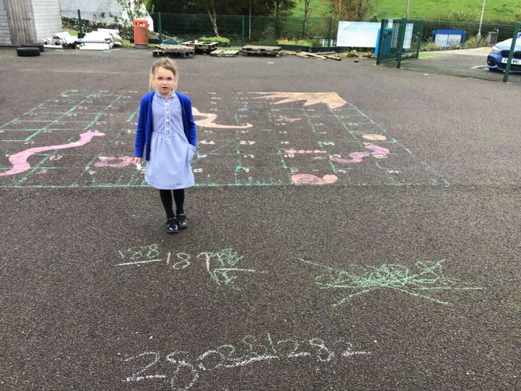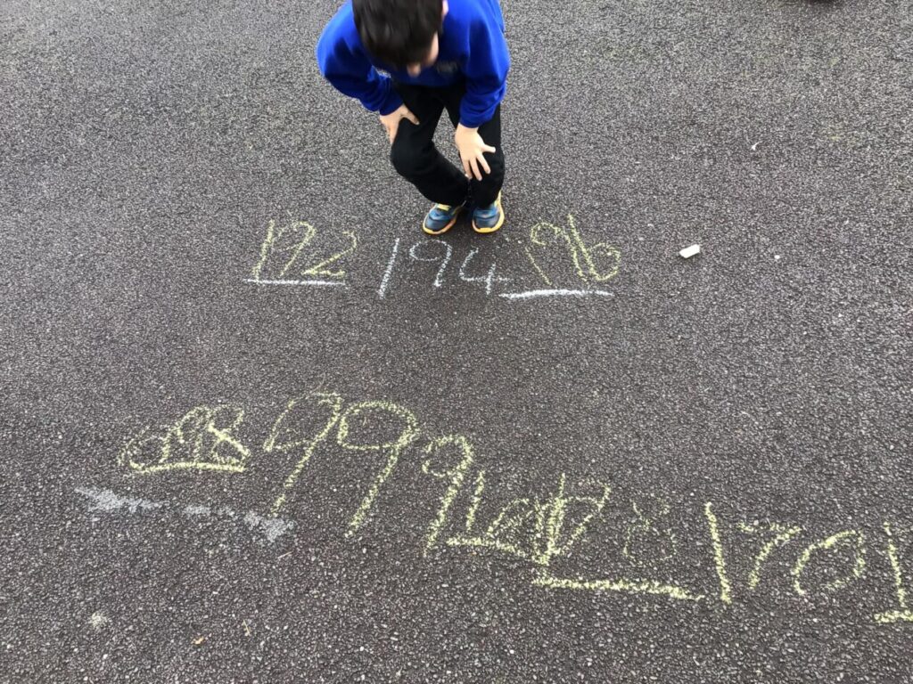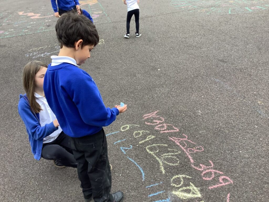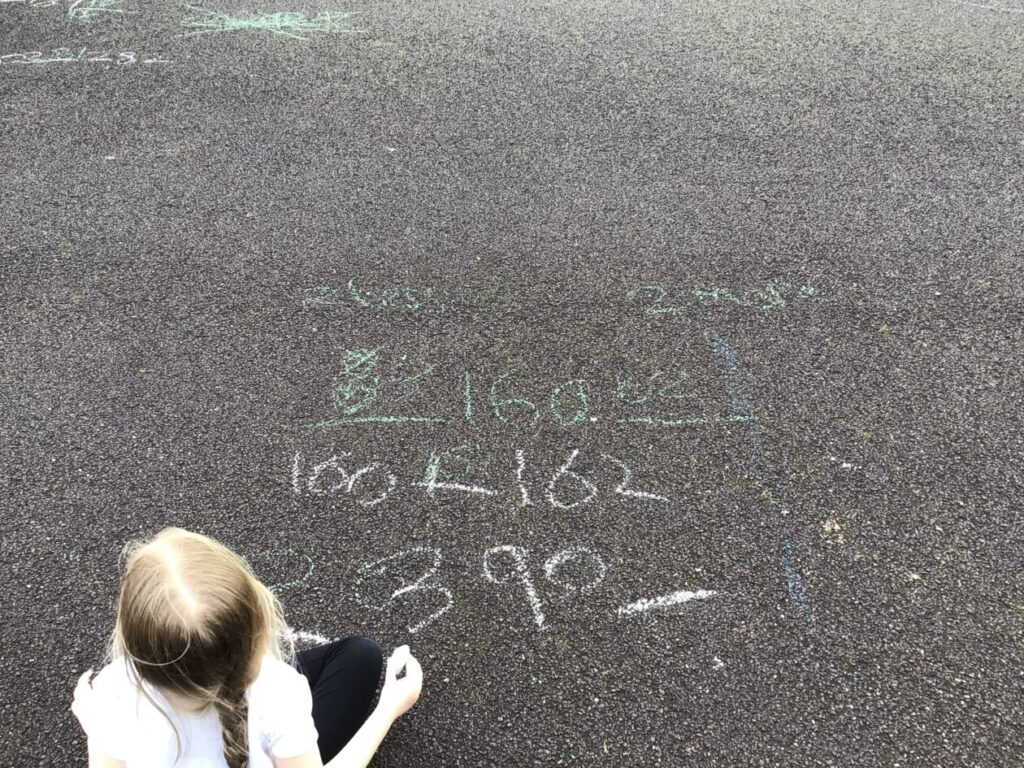 We were doing place value in maths. Some people were ordering numbers with chalk. We also played a game where you round the number to the nearest 10. – Mirren