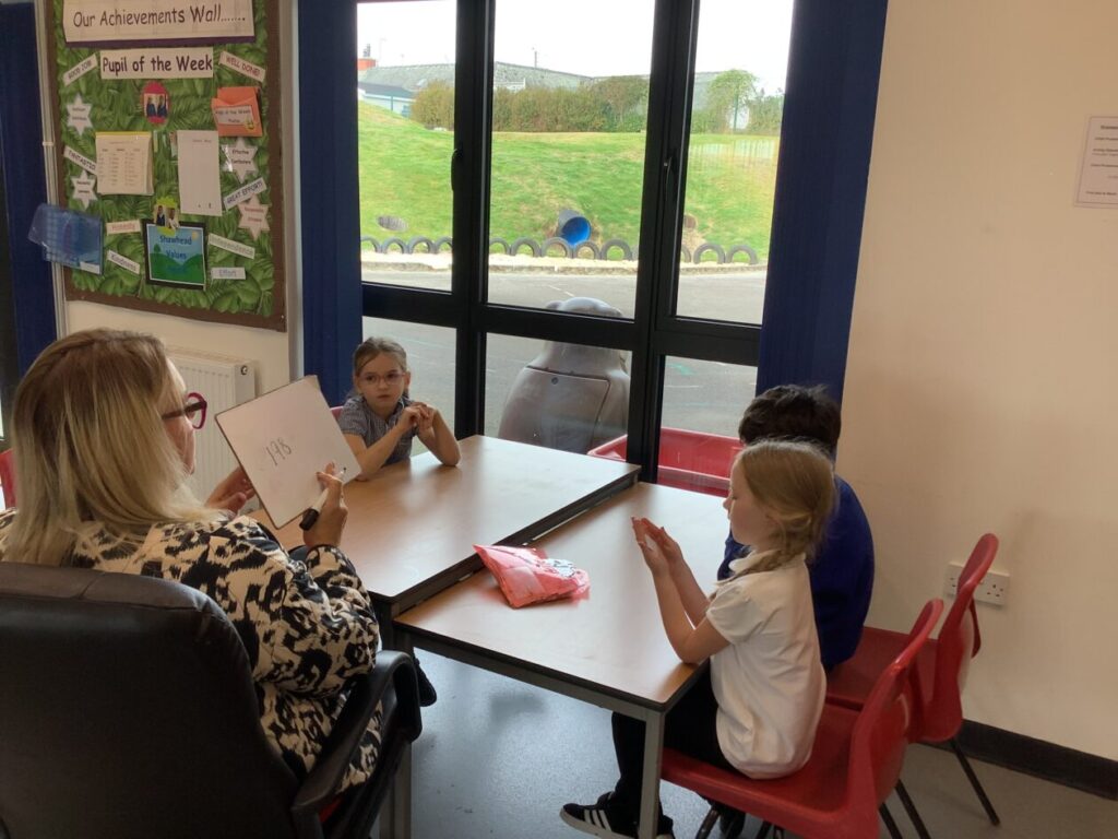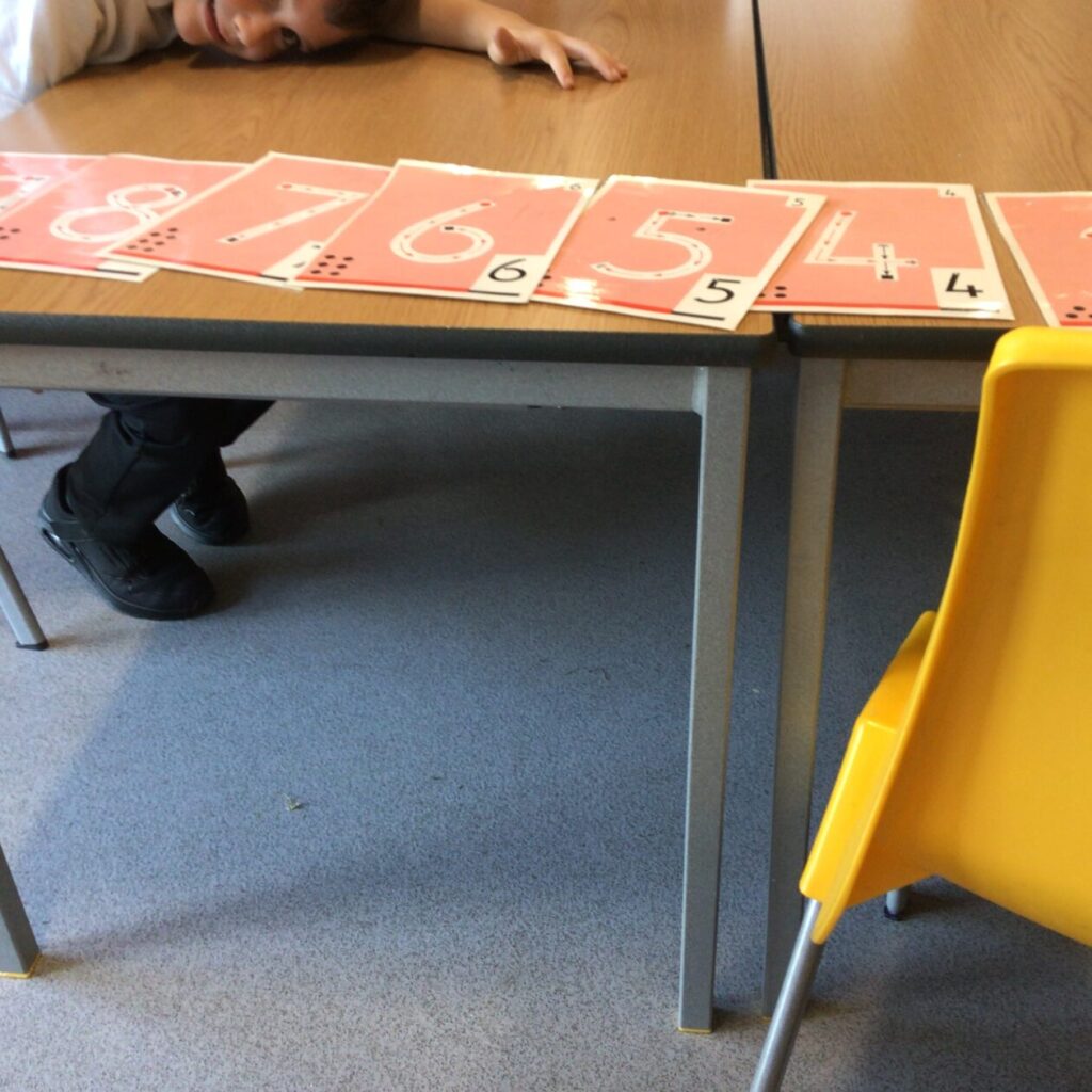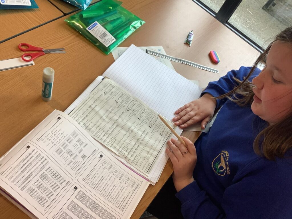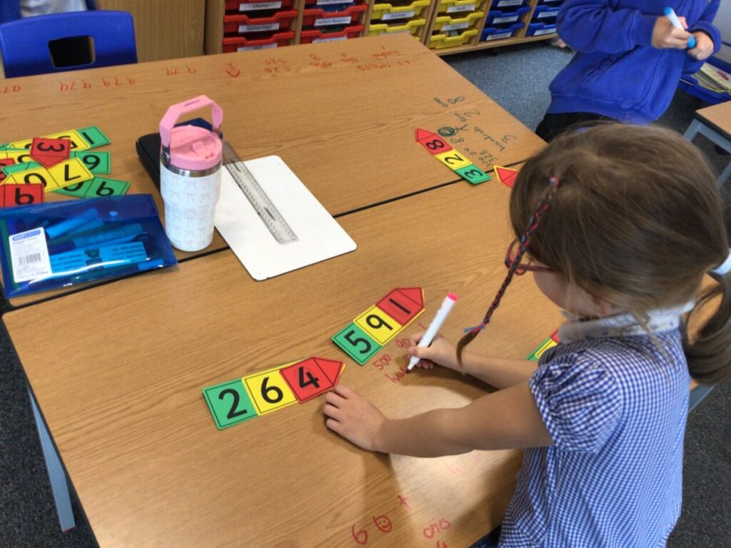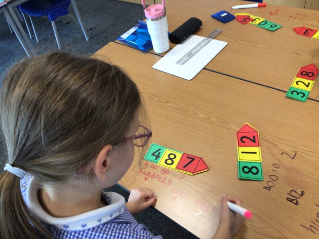 We were doing place value in maths. Some people were ordering numbers with chalk. We also played a game where you round the number to the nearest 10. – Mirren