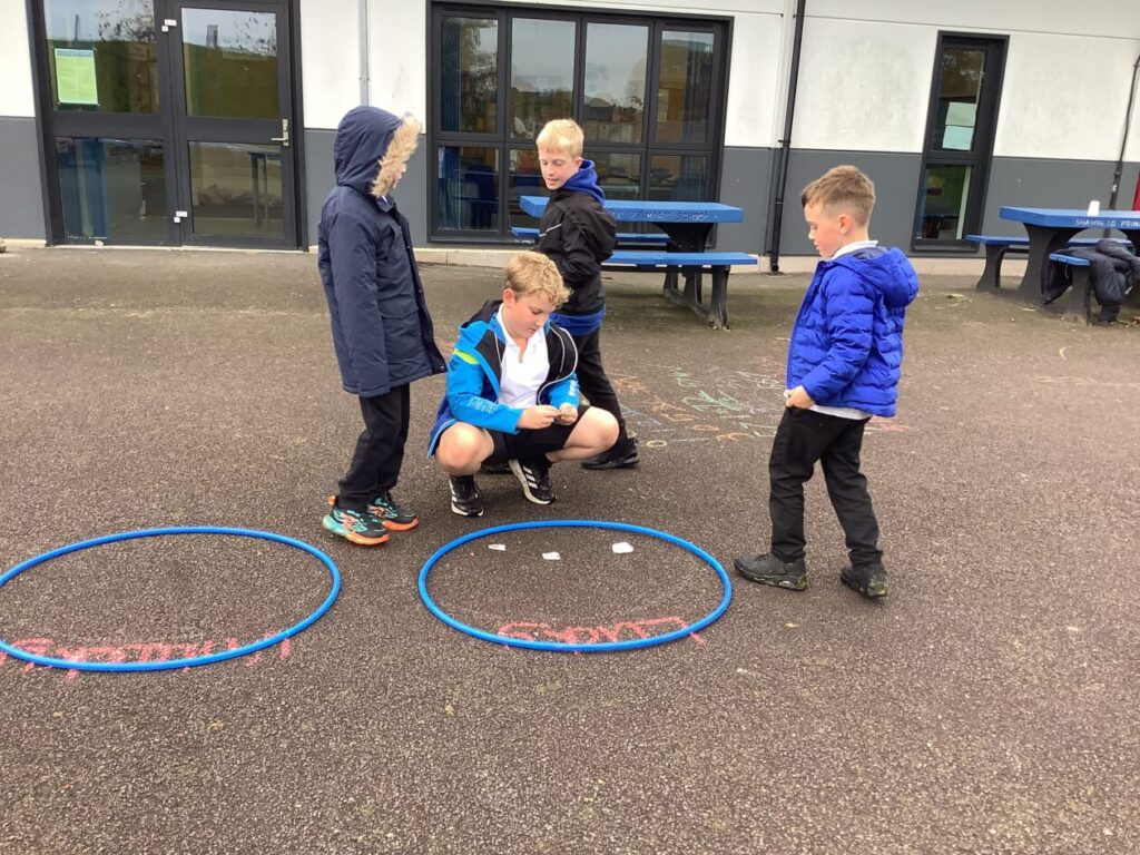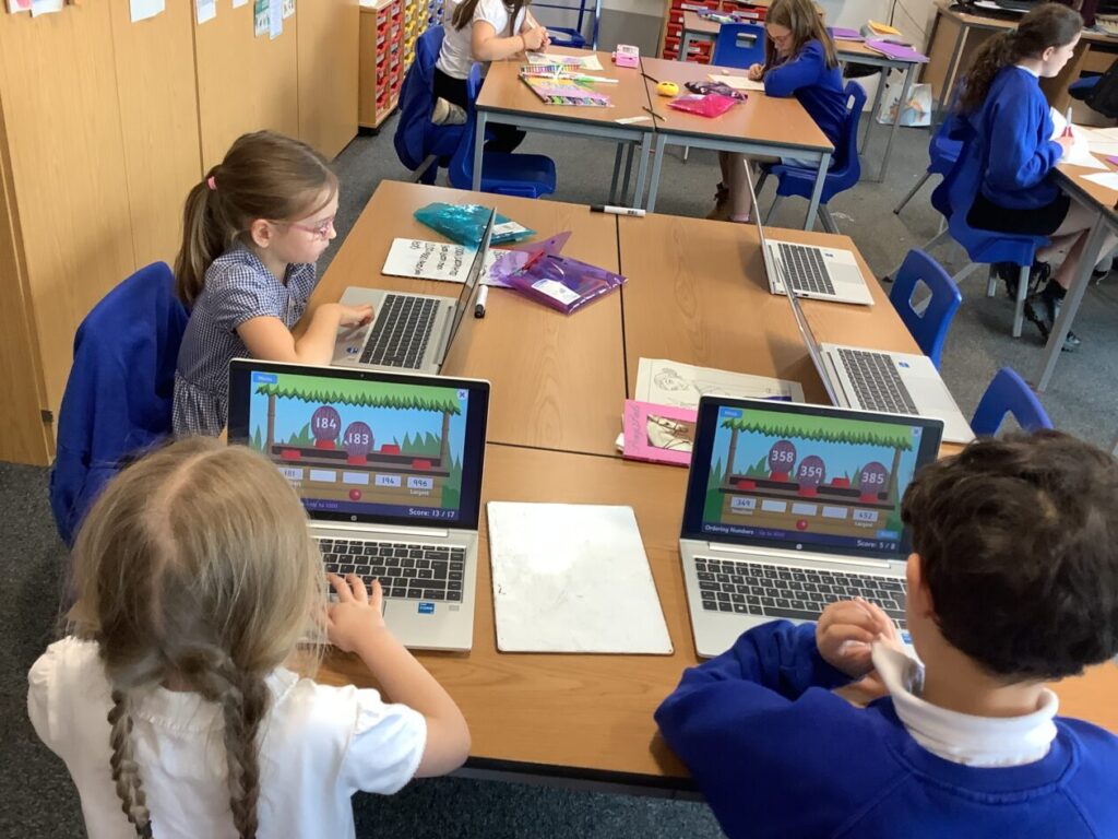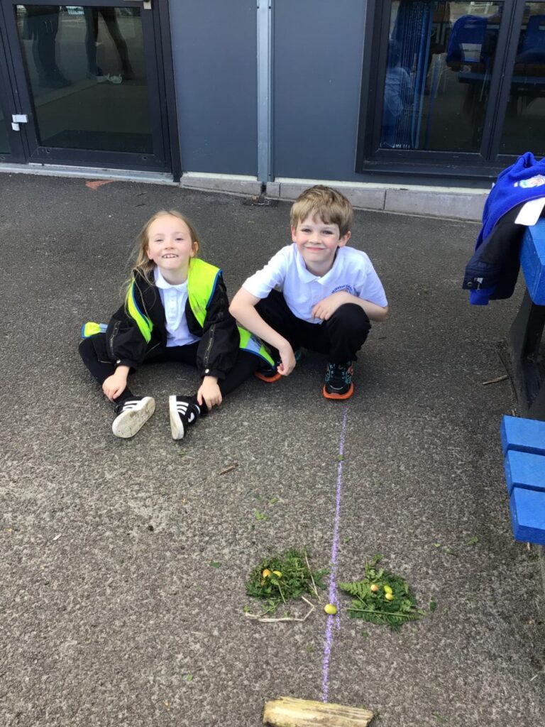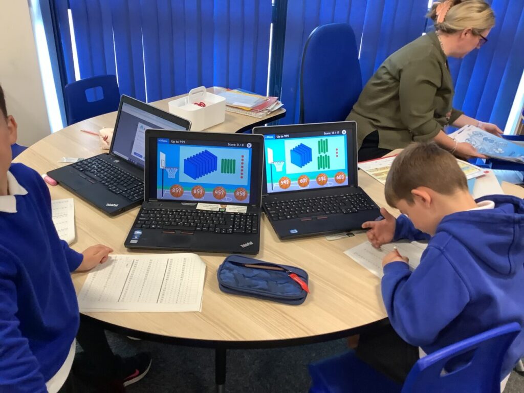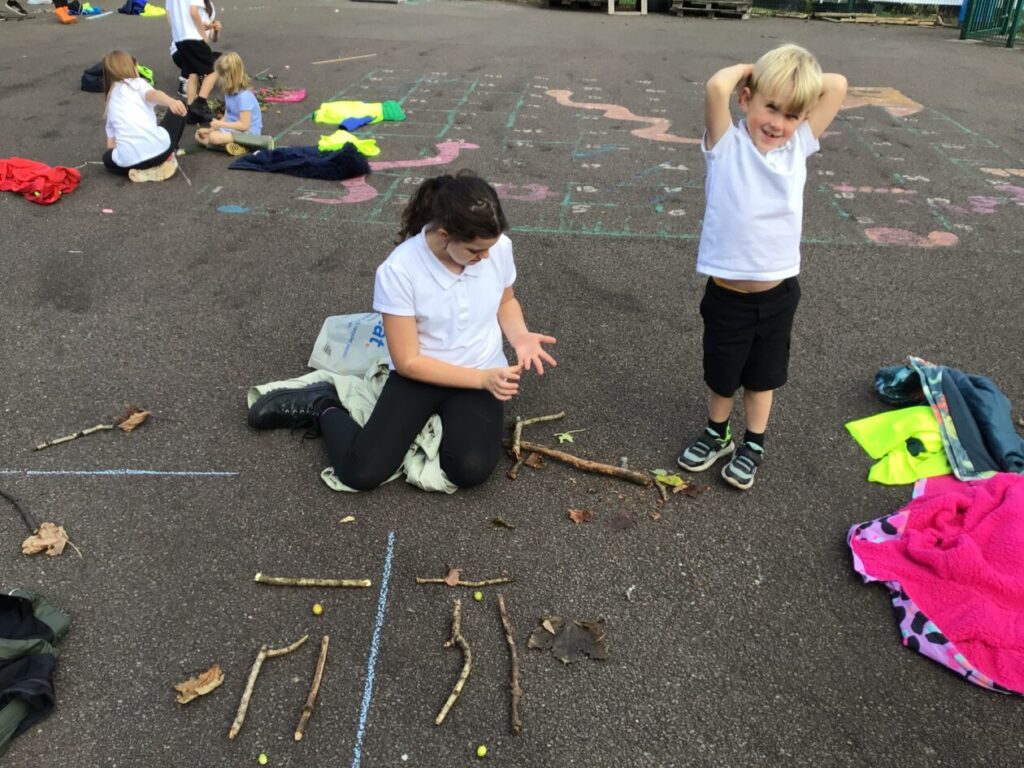 The blue class were doing different activities for maths. We were playing Topmarks on the laptop and place value activities inside and outside. – Ella